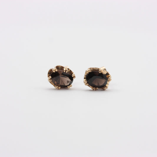Vintage 9ct Gold Smoky Quartz Stud Earrings, 1989, 8mm