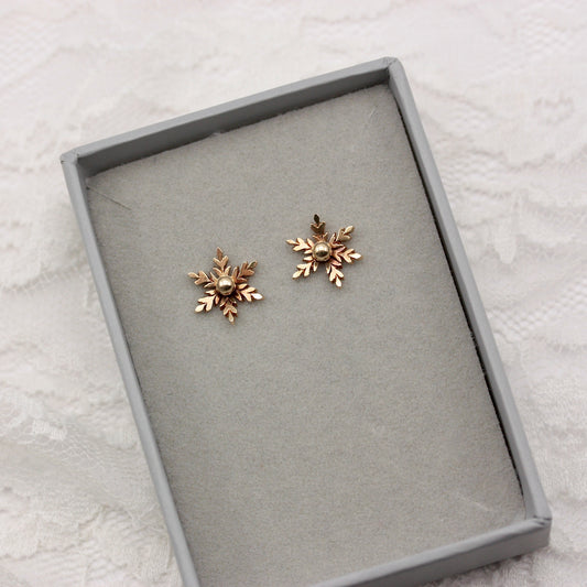 Vintage 9ct Gold Snowflake Stud Earrings, 1970s
