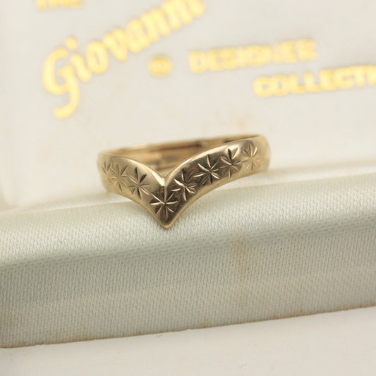 Vintage 9ct Gold Star Engraved Wishbone Ring