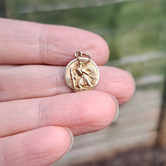 Vintage 9ct Gold St Christopher Pendant, Medium