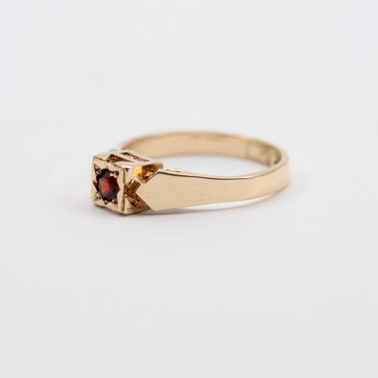 Vintage 9ct Gold Square Front Garnet Solitaire Ring, 1972