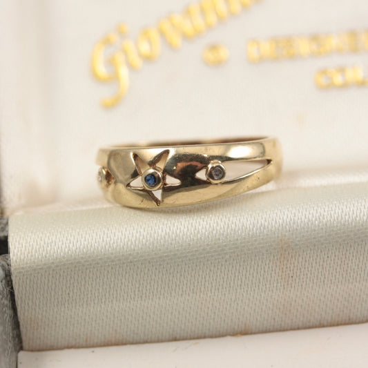 Vintage 9ct Gold Spinel Star Band Ring, 1970s