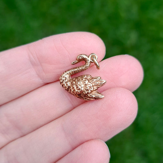 Vintage 9ct Gold Swan Charm, 1975