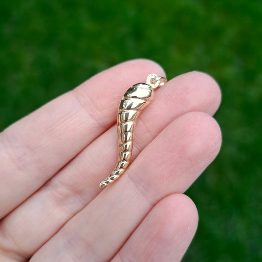 Vintage Italian 9ct Gold Twisted Cornicello Horn Pendant, Unoaerre, 1988