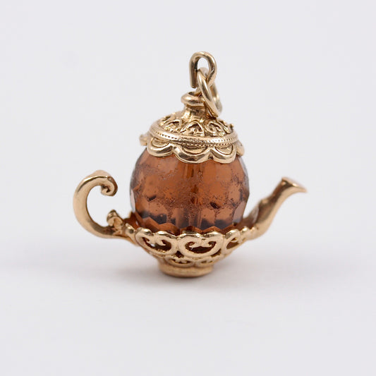 Vintage NUVO 9ct Gold Brown Crystal Teapot Charm, 1973