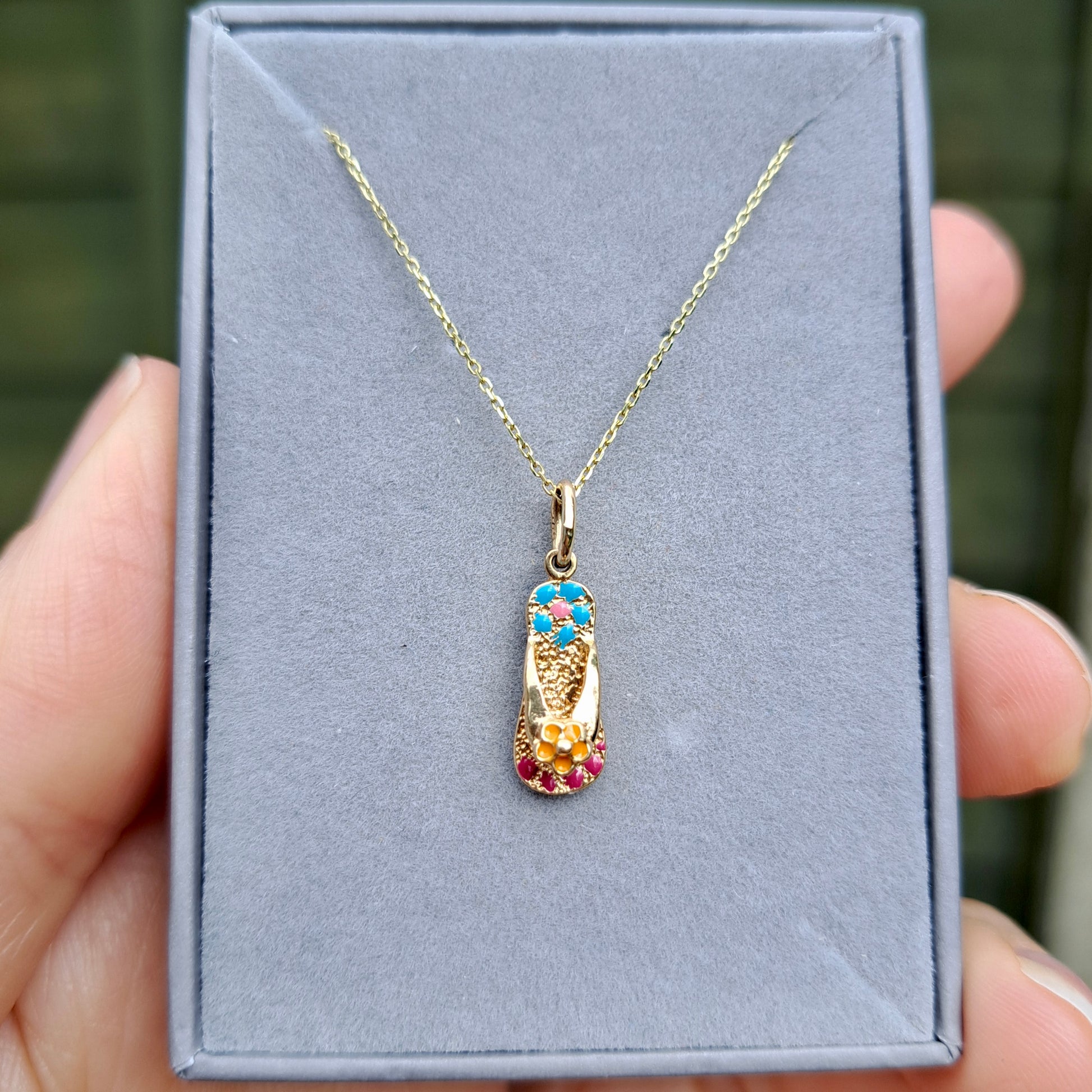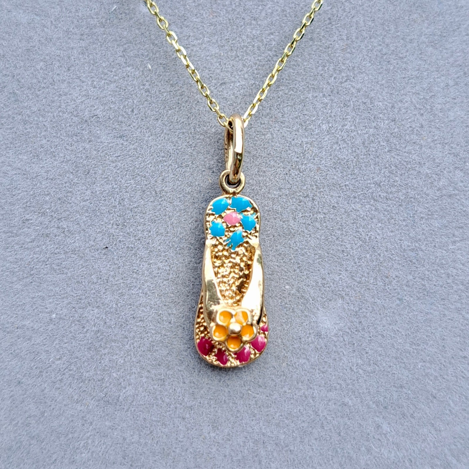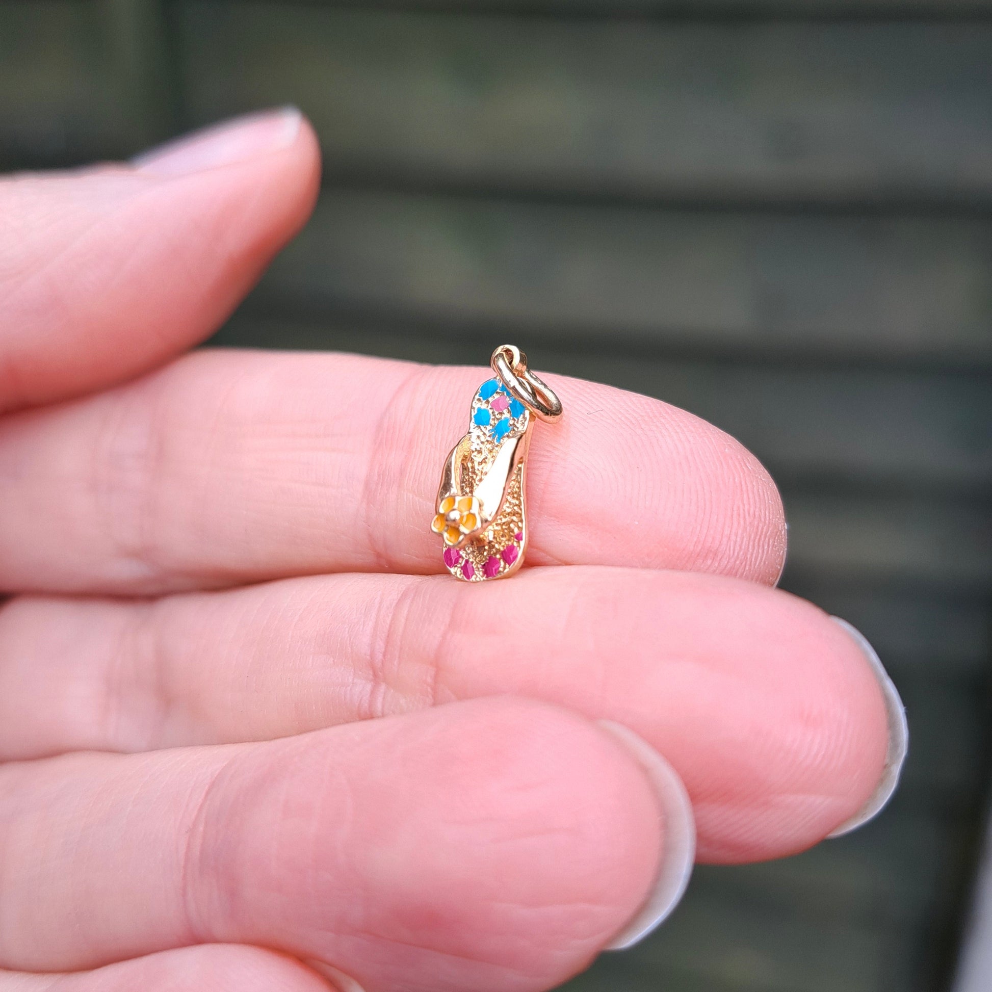 14ct Yellow Gold and Colourful Enamel Flip Flop Charm