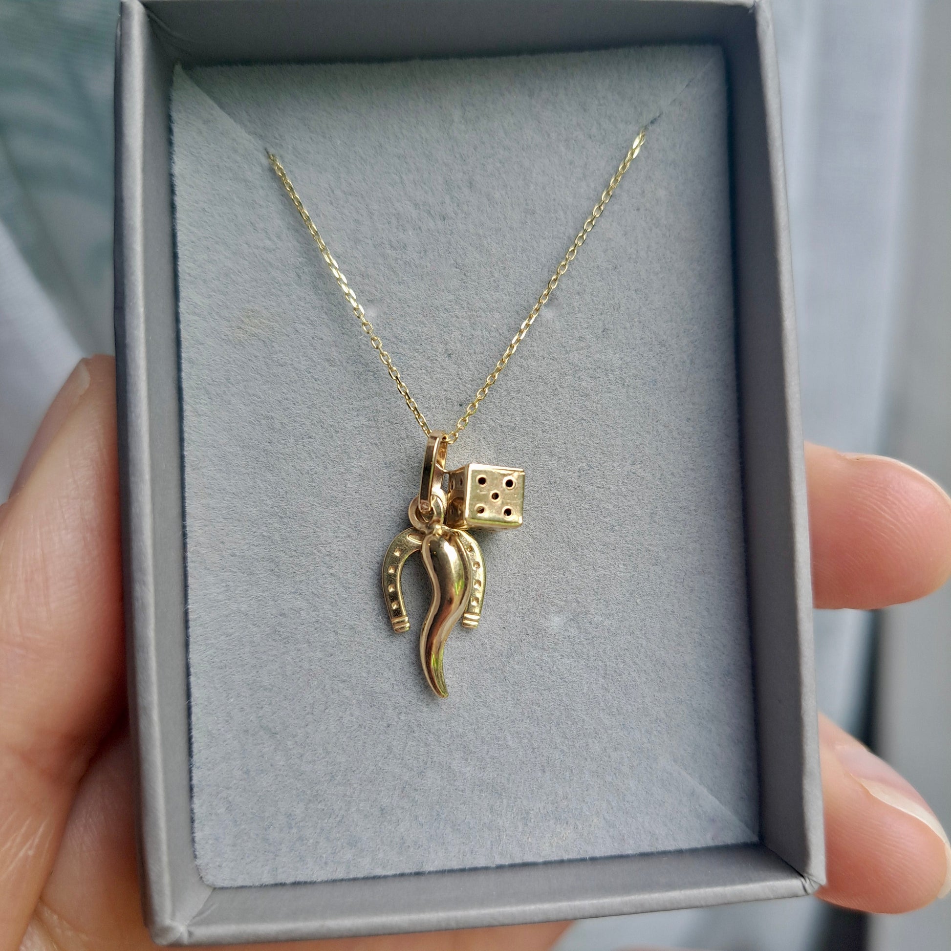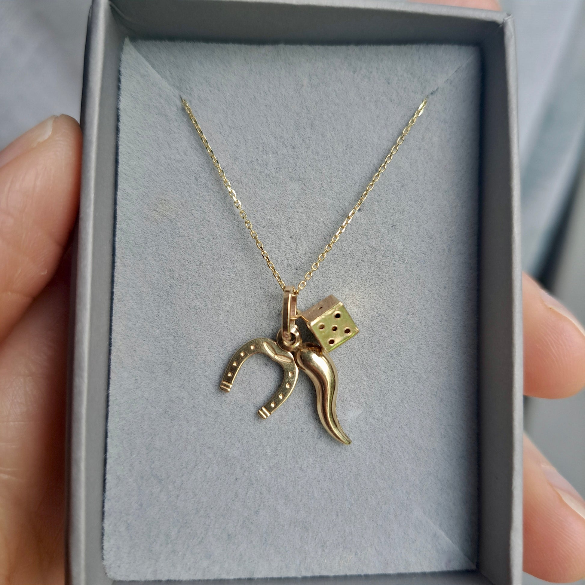 9ct Gold Lucky Charms Set - Cornicello, Dice, Horseshoe