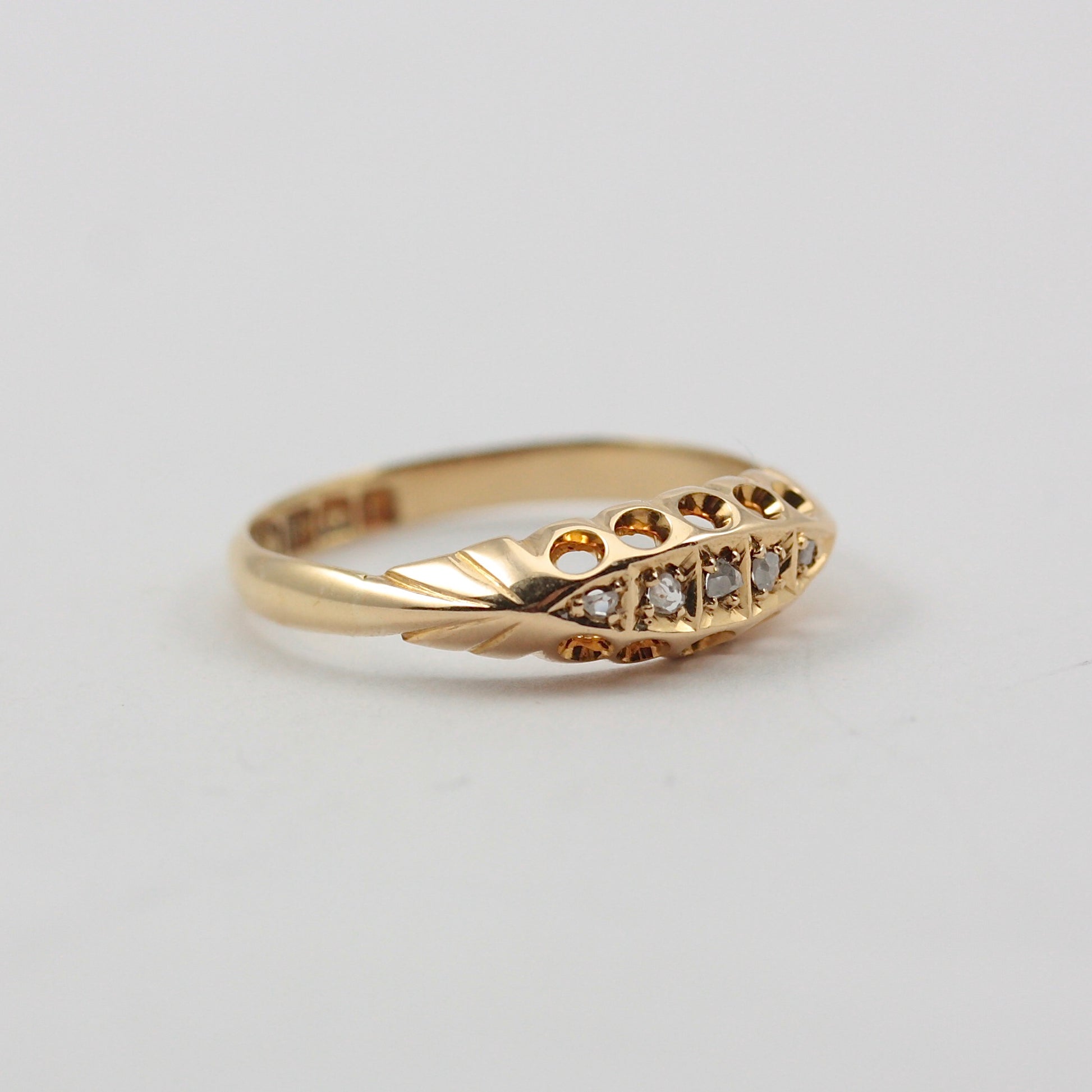 Antique Edwardian 18ct Gold Diamond Chip 5 Stone Boat Ring, 1907