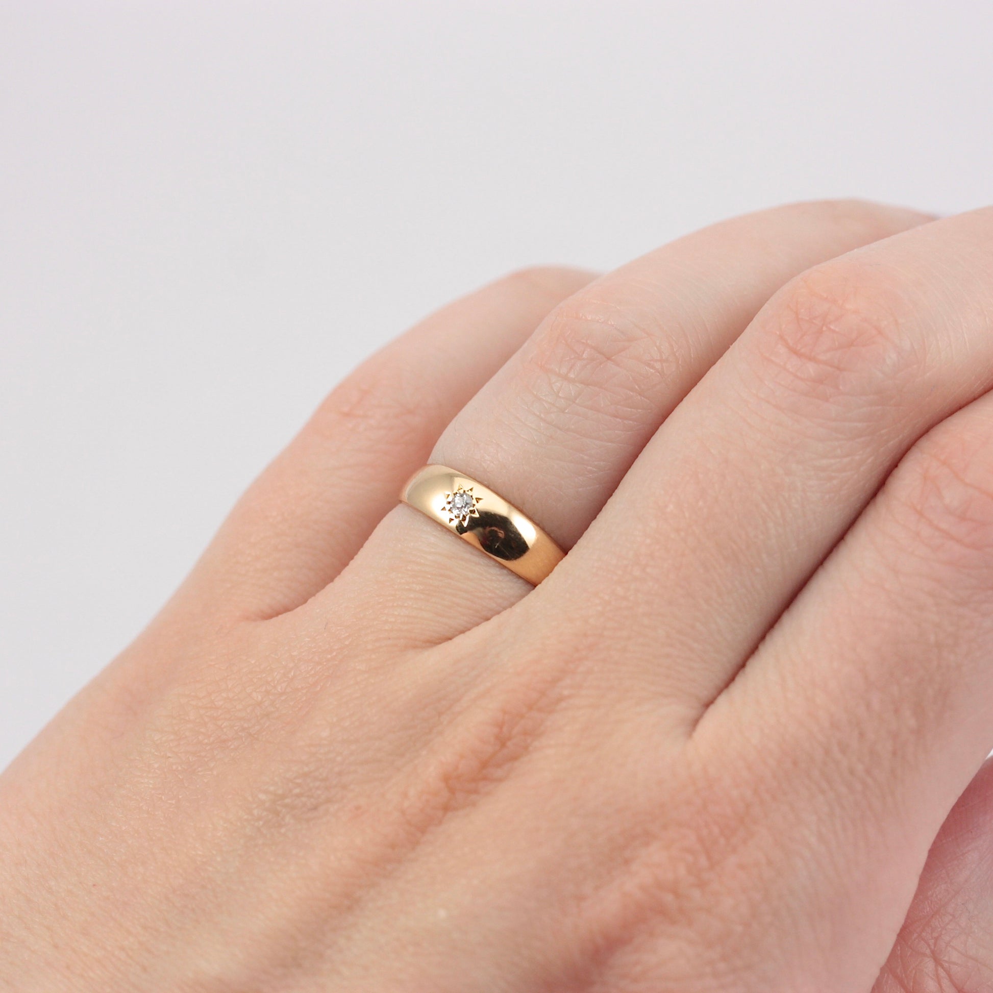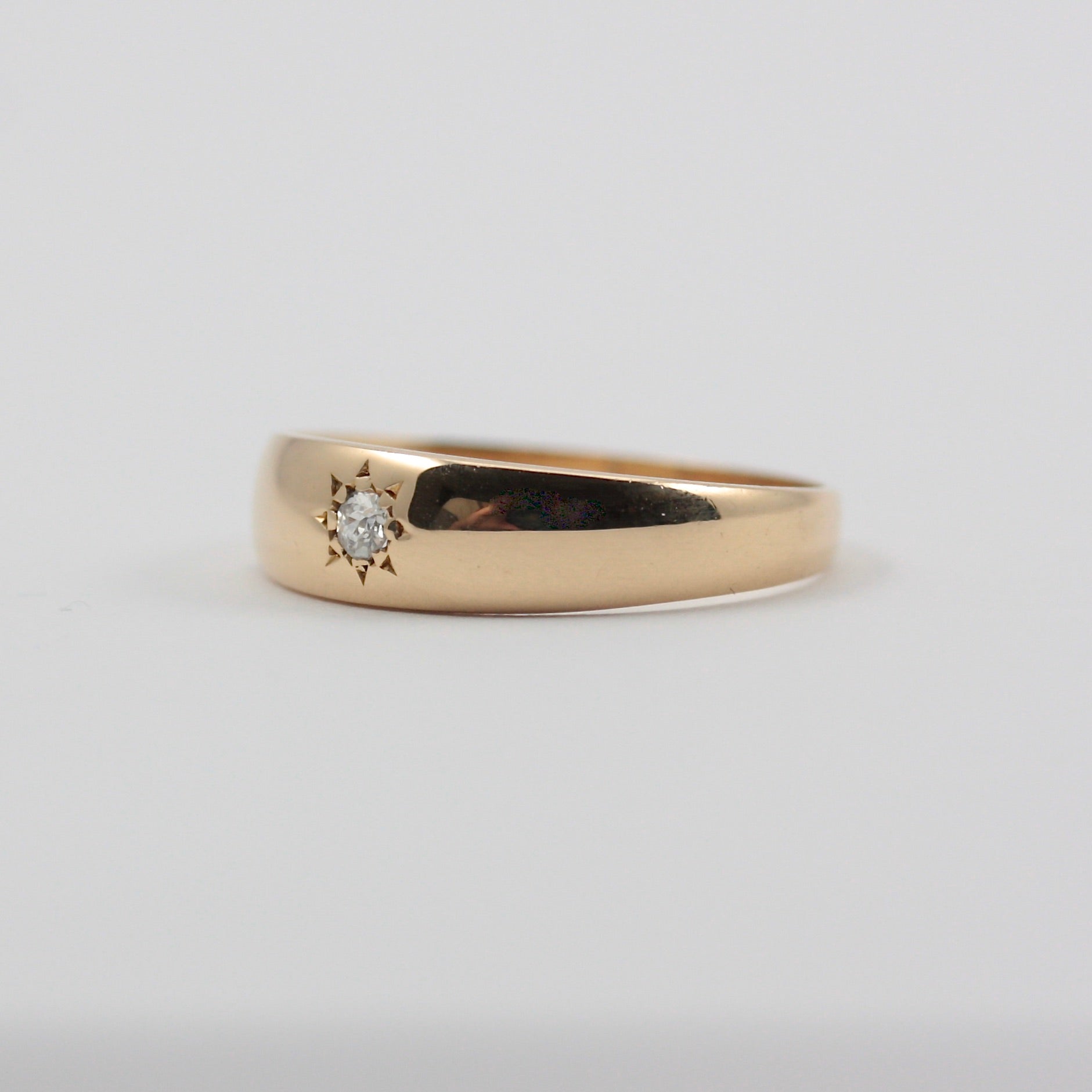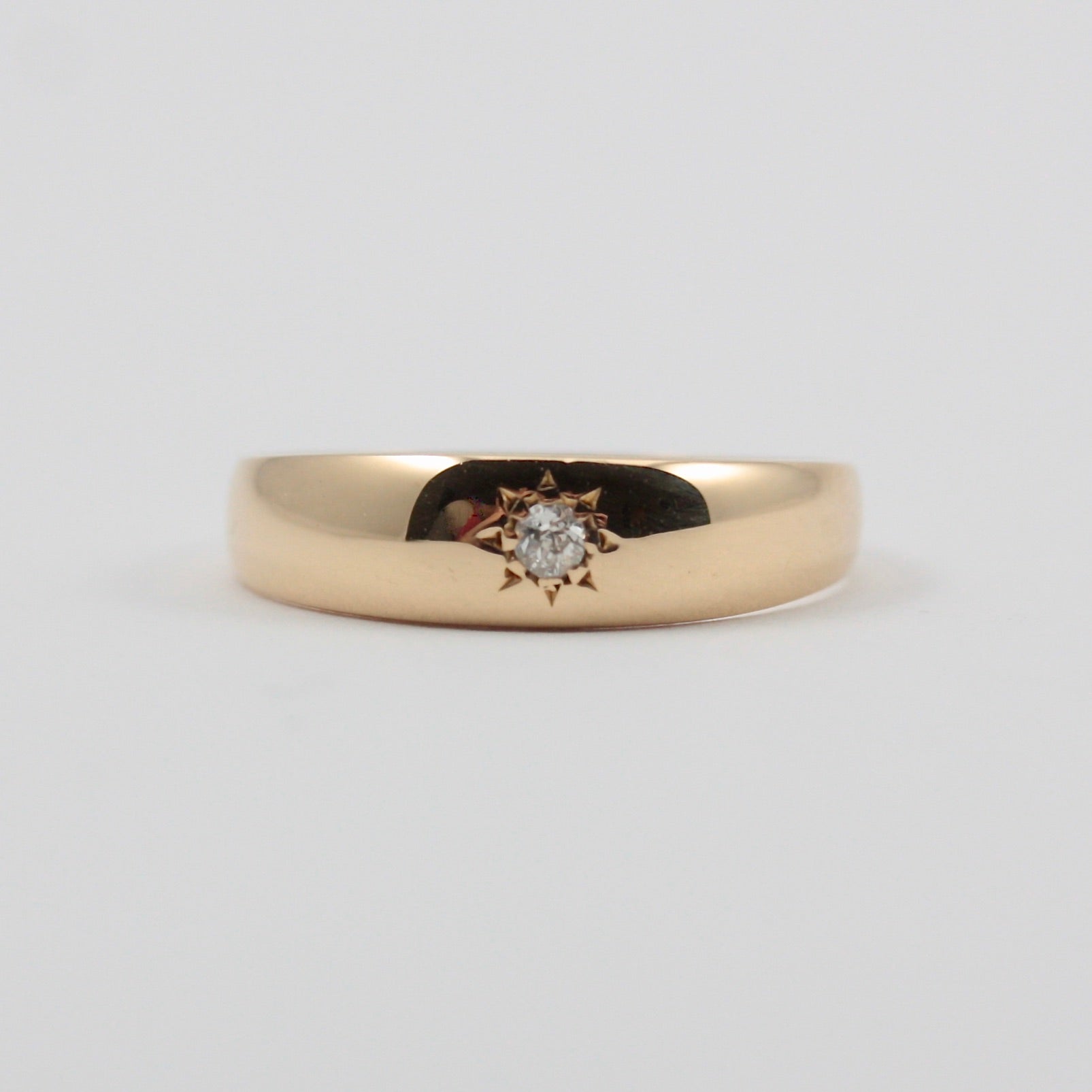 A classic antique 18ct yellow gold band ring with one central star set diamond.