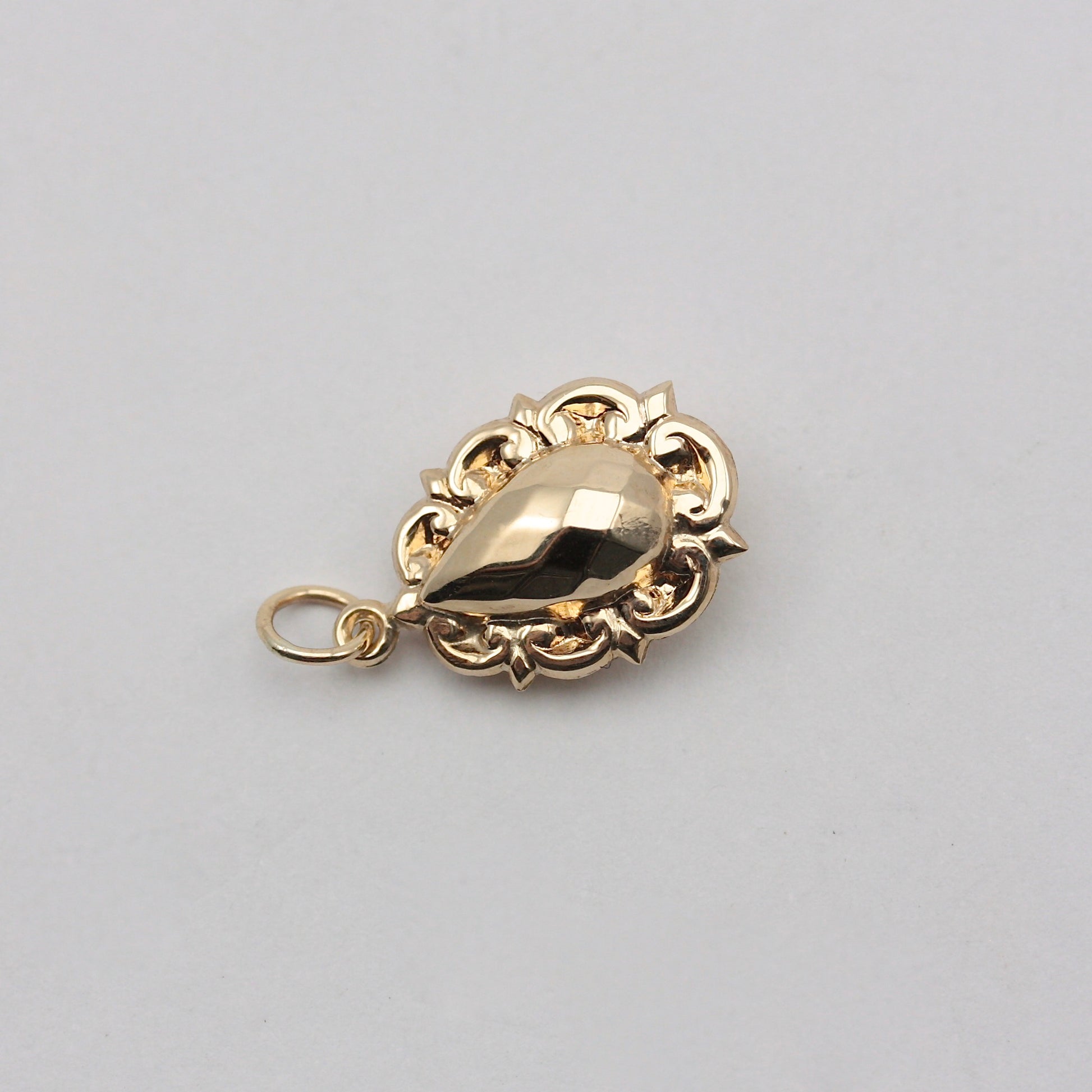 A lovely antique 9ct yellow gold puffy charm / small pendant with faceted detail to the centre and decorative edges.