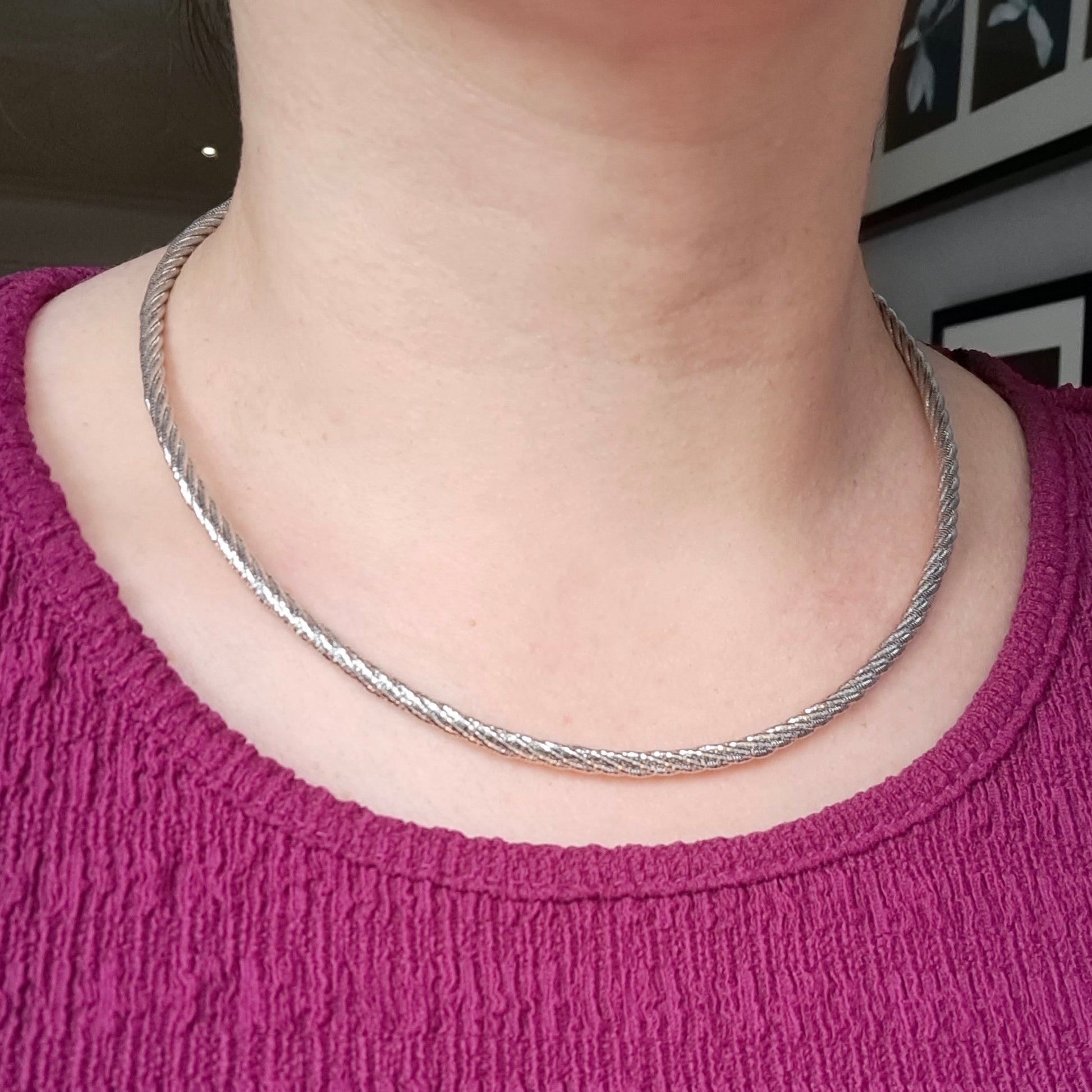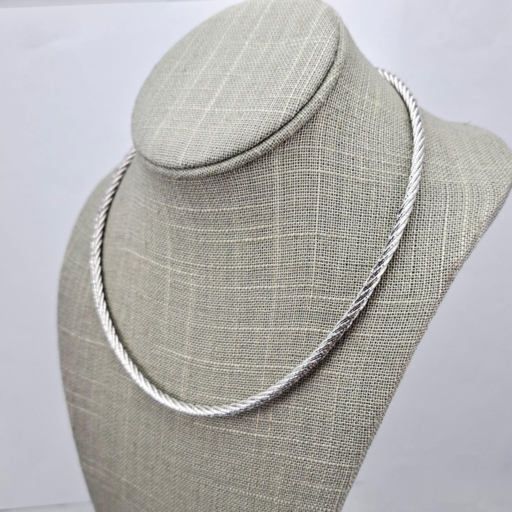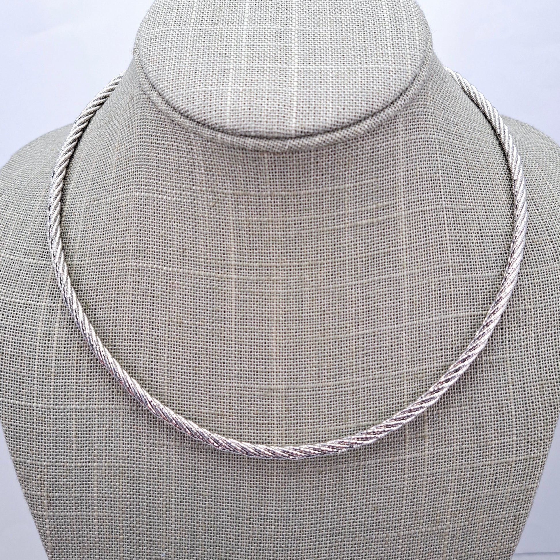 Chunky Sterling Silver Twisted Omega Chain Necklace, 24g, 3.6mm, 18" Hallmarked