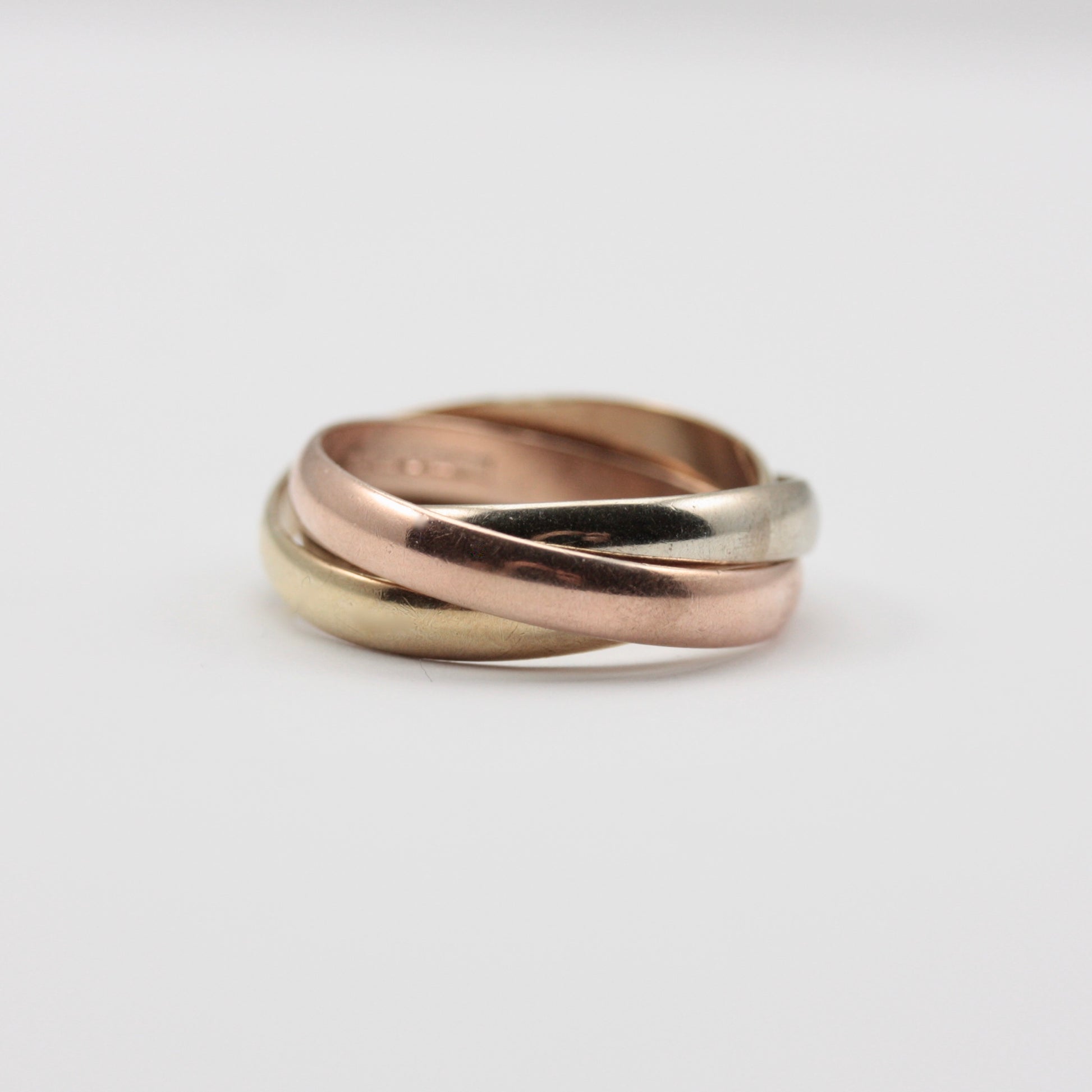 Chunky Vintage Tri Colour 9ct Gold Russian Wedding Ring, 1994