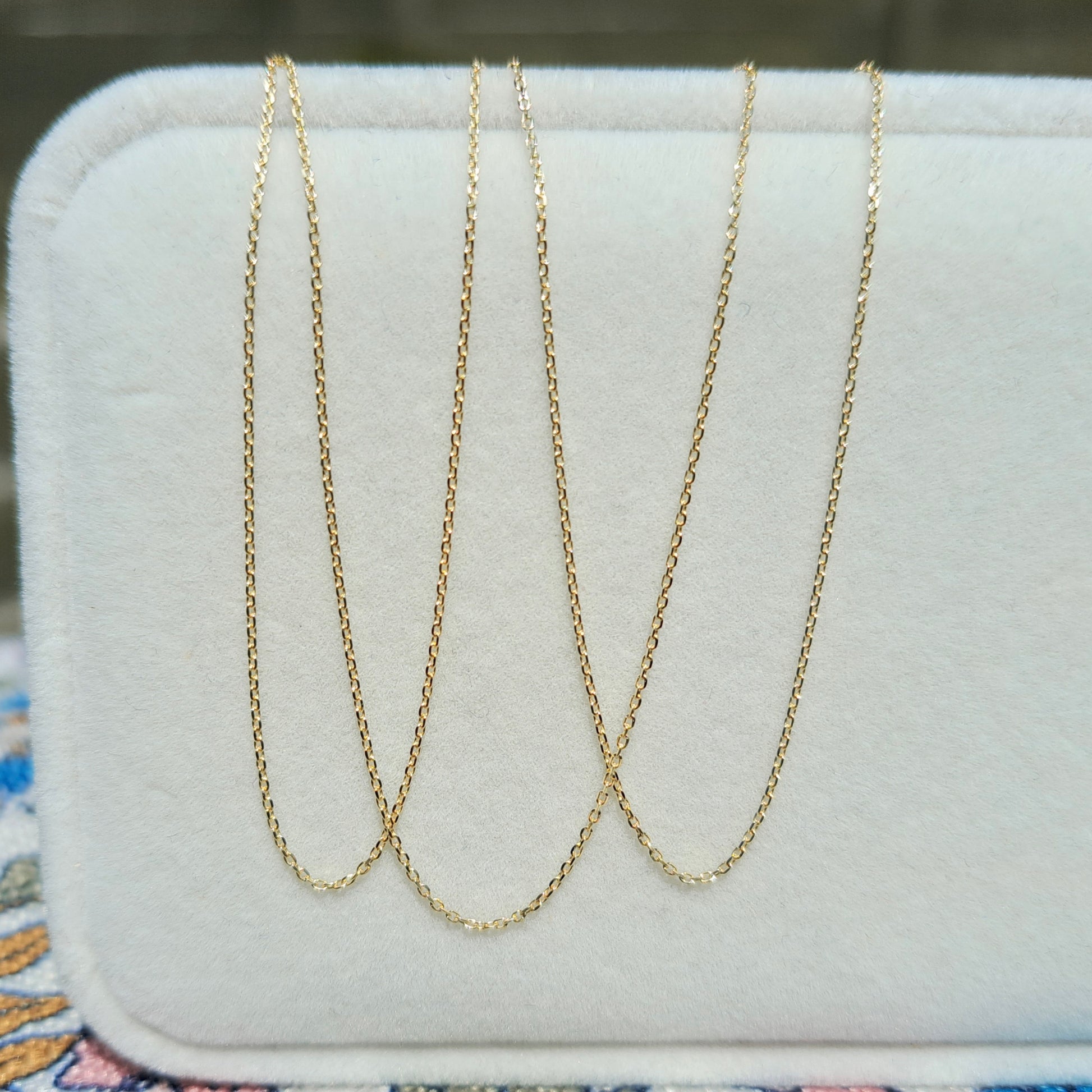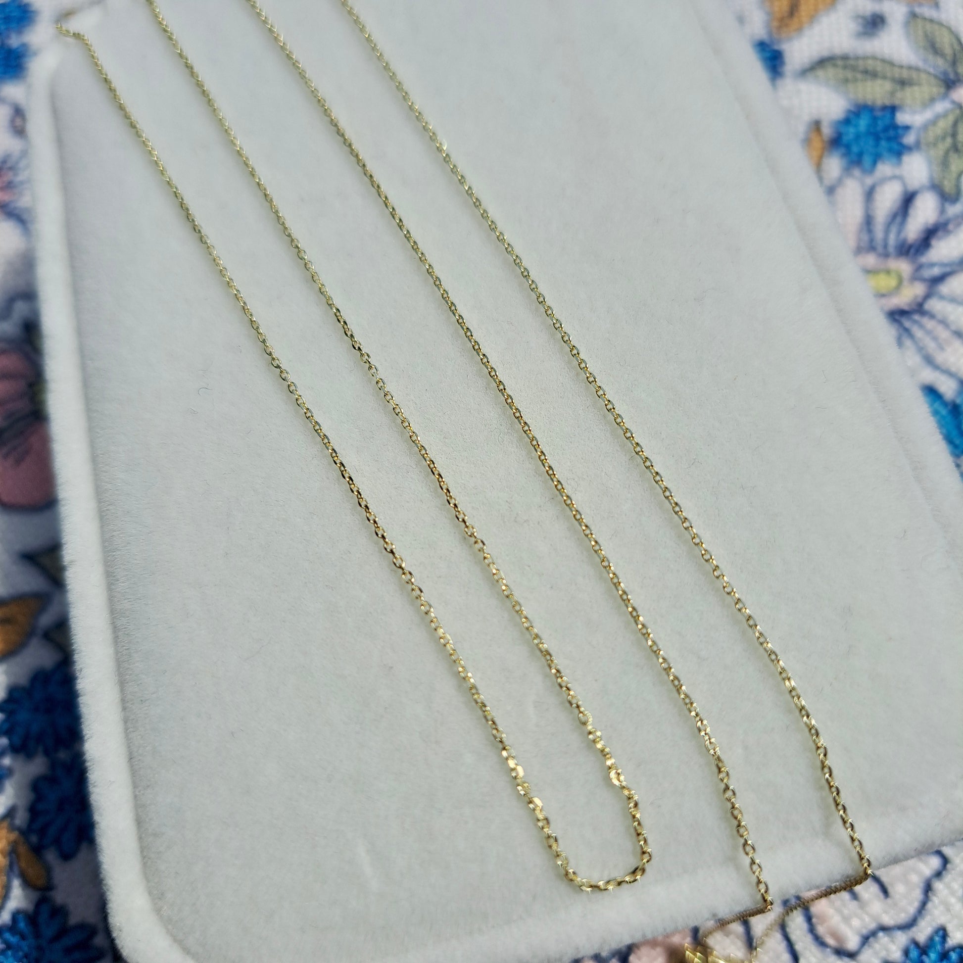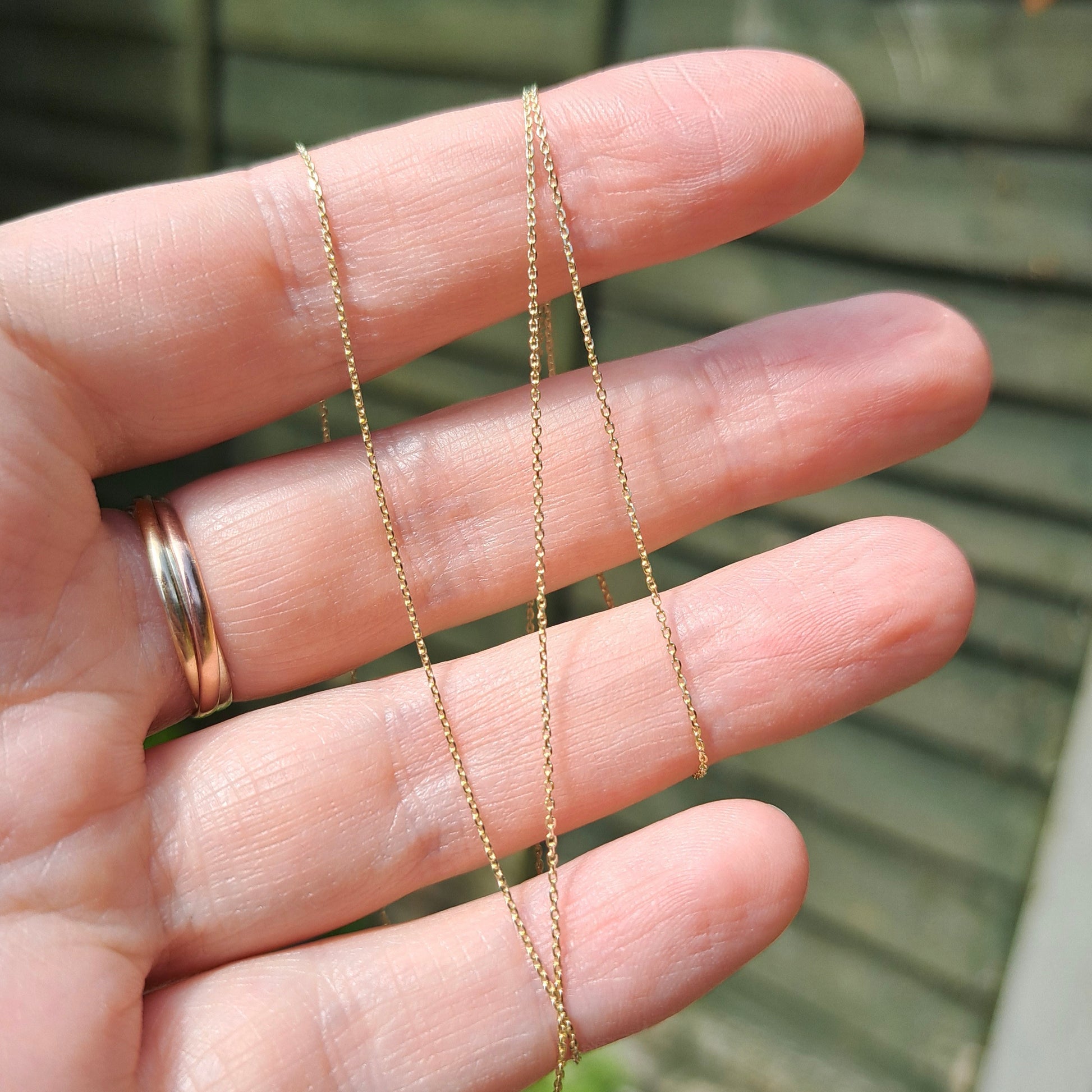A delicate 9ct yellow gold belcher chain which pairs perfectly with our small vintage charms and pendants.