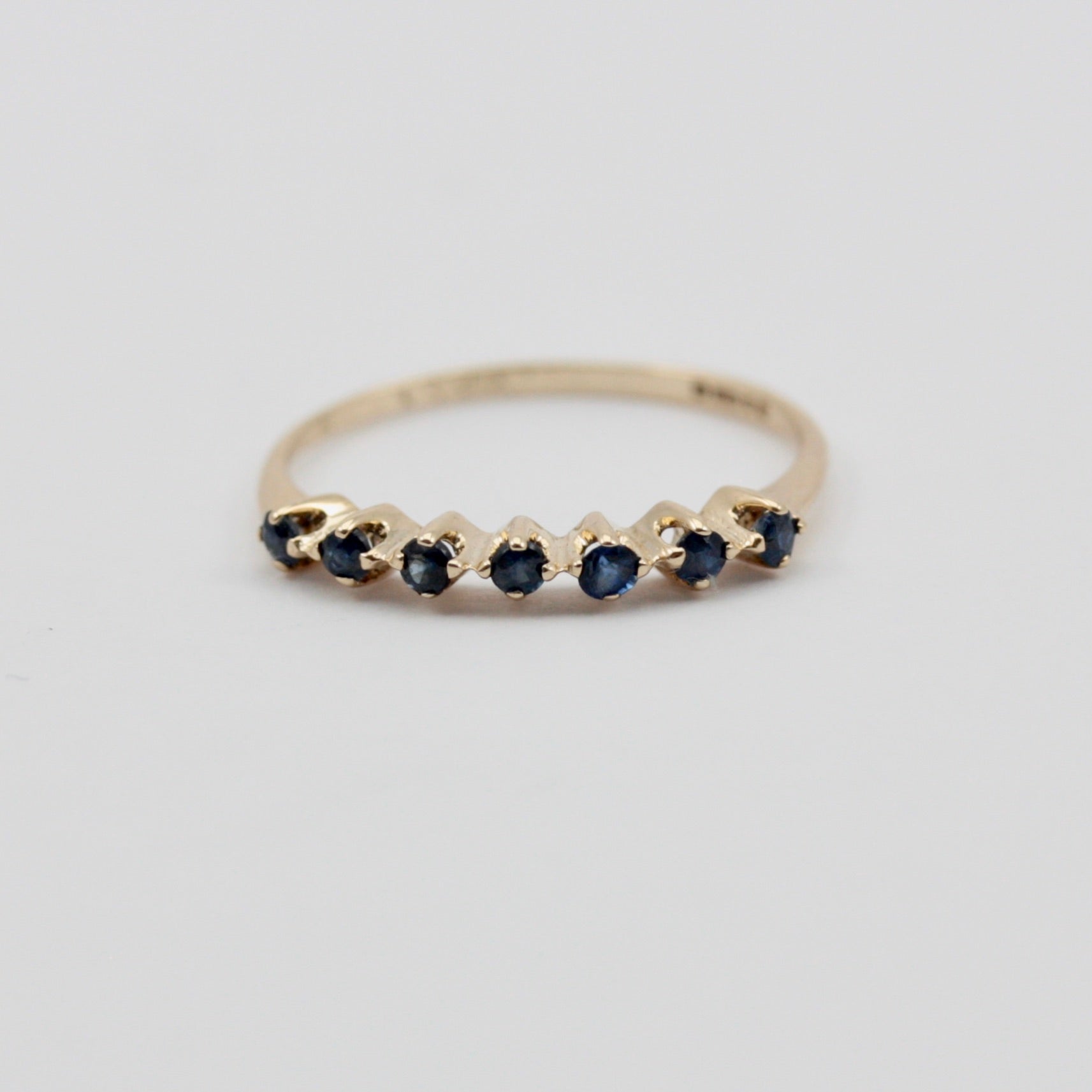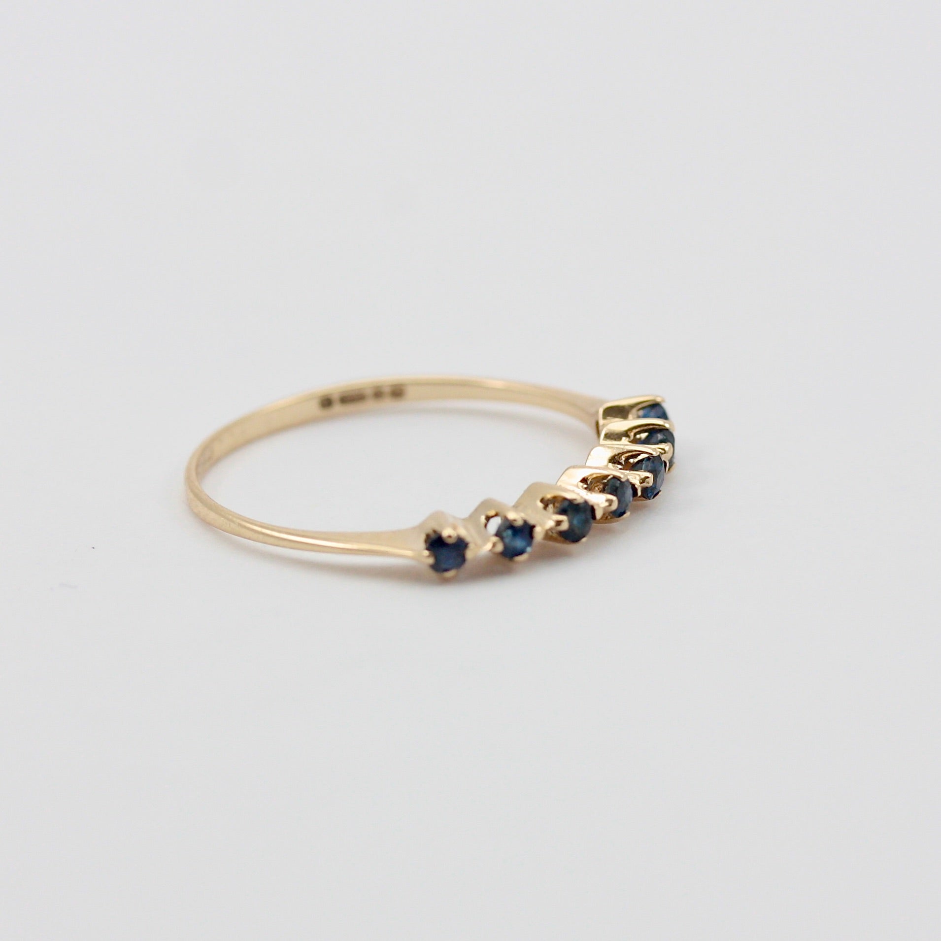 Dainty Vintage 9ct Gold Sapphire 7 Stone Ring.