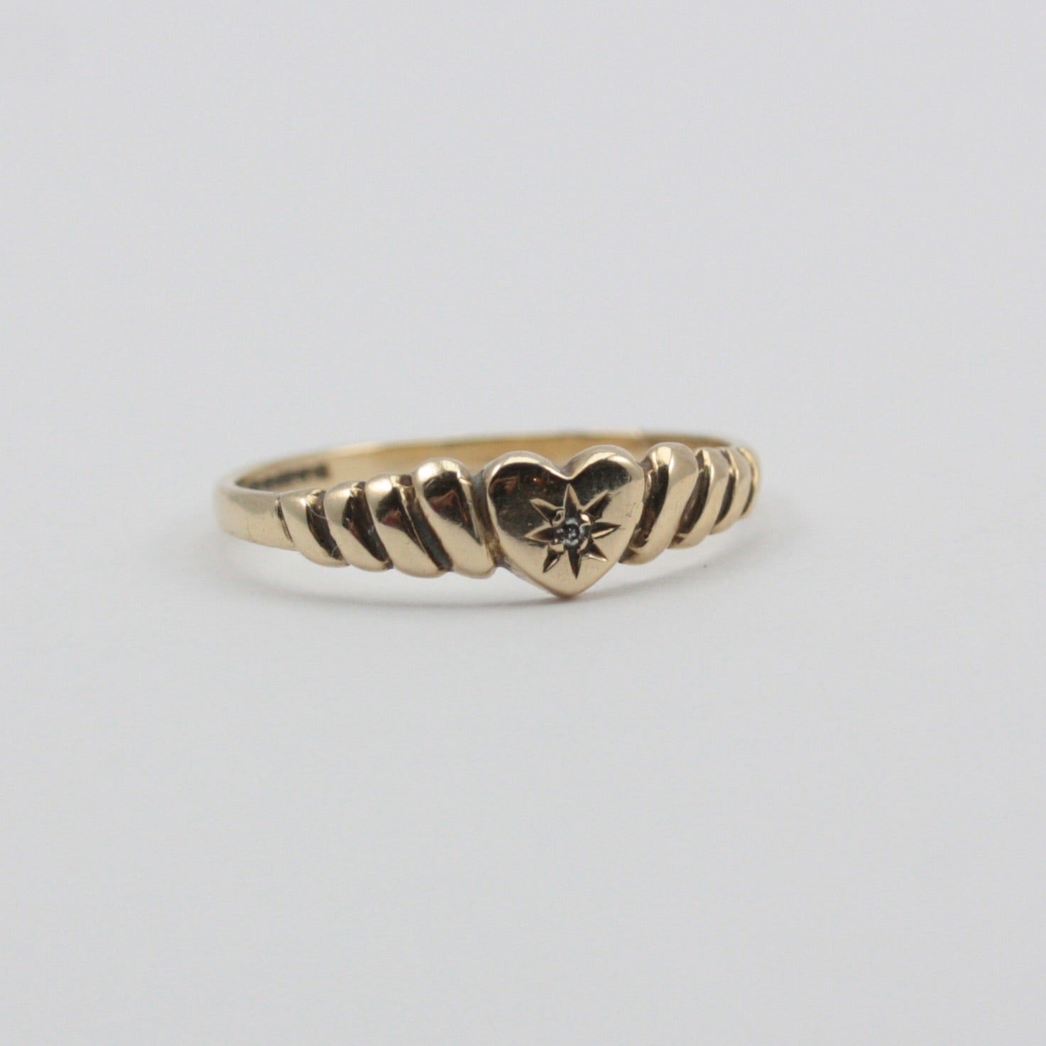 Dainty Vintage 9ct Gold Star Set Diamond Heart Ring, 1990.