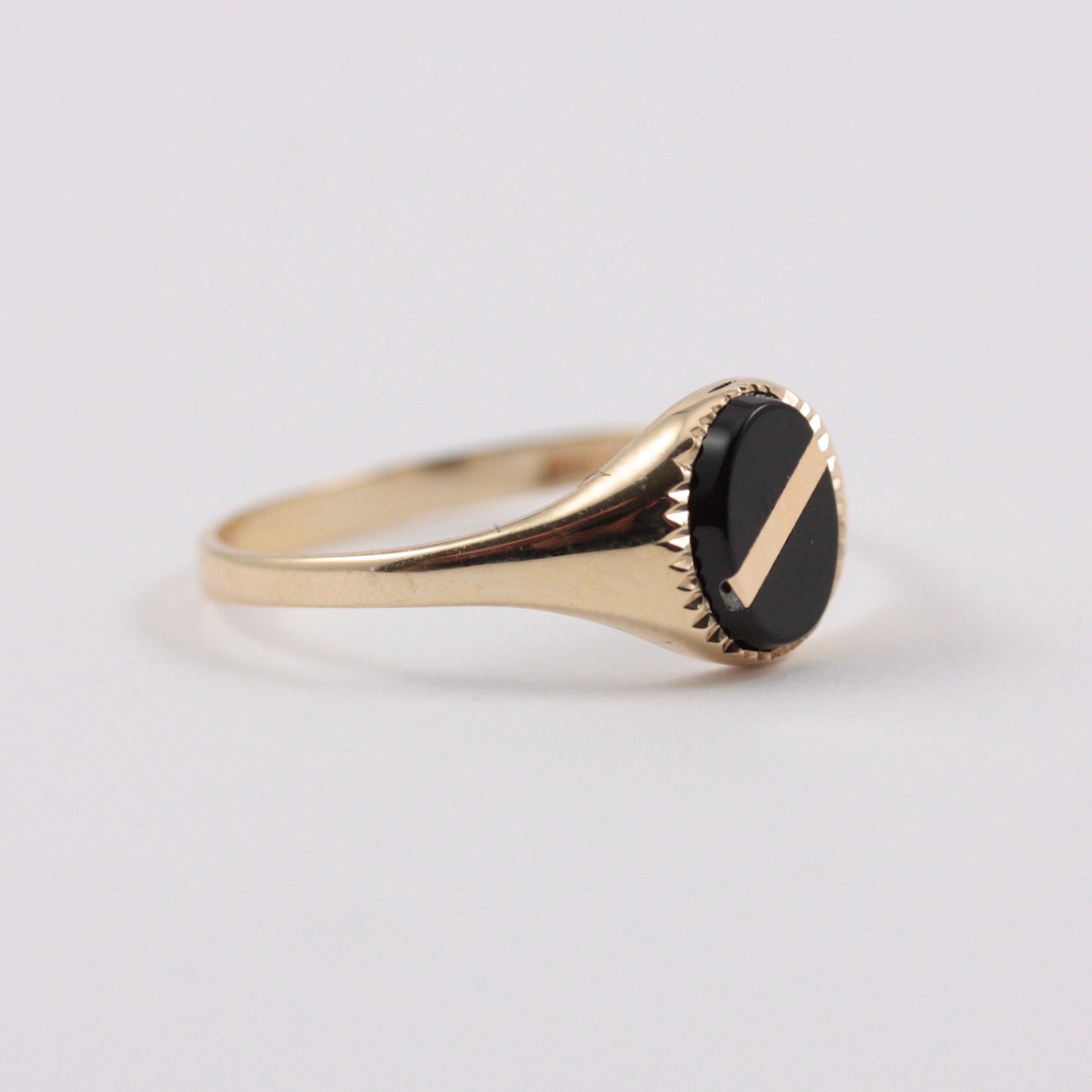 A dainty 9ct gold signet ring with gold striped black onyx.