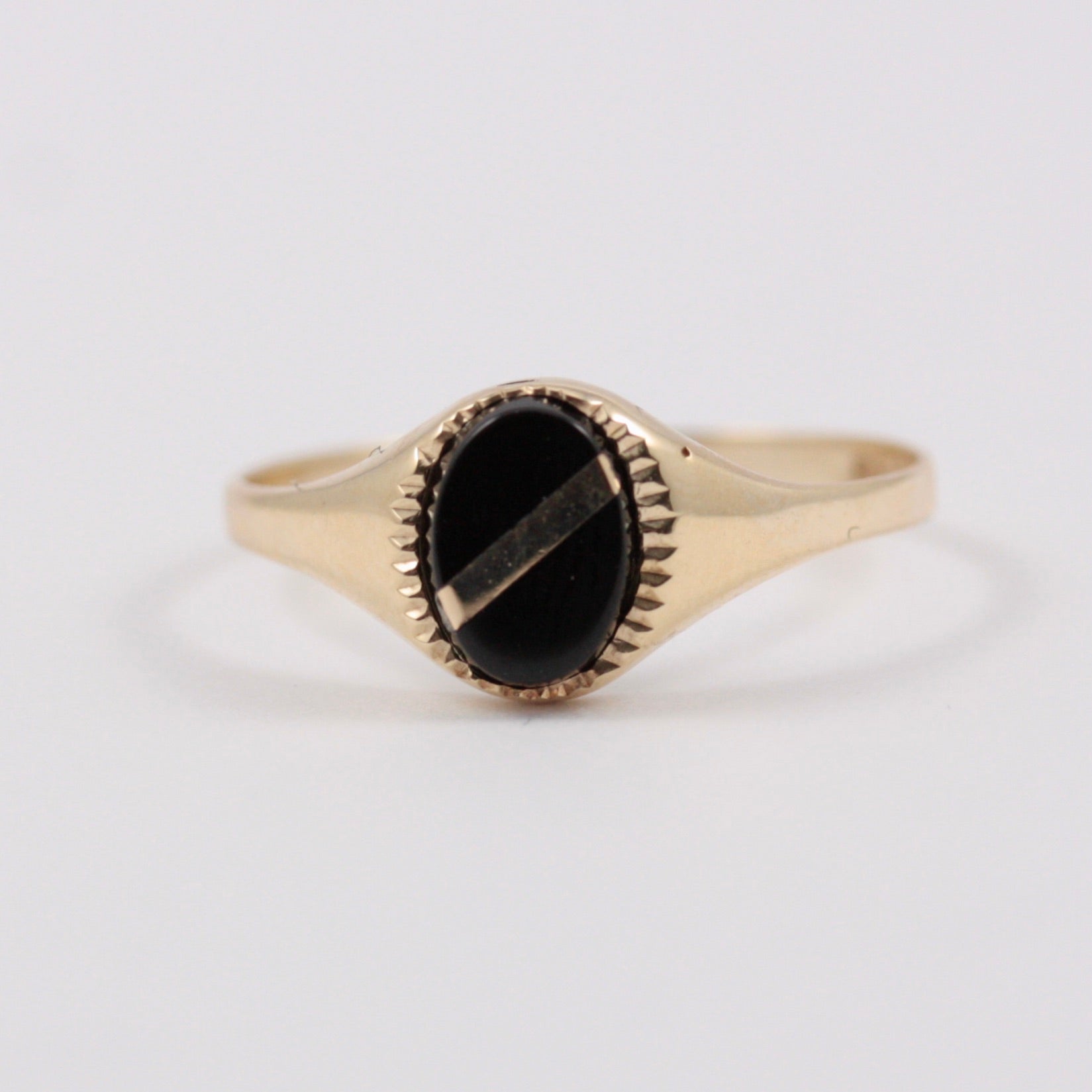 Dainty Vintage 9ct Gold Striped Onyx Ring, 1988