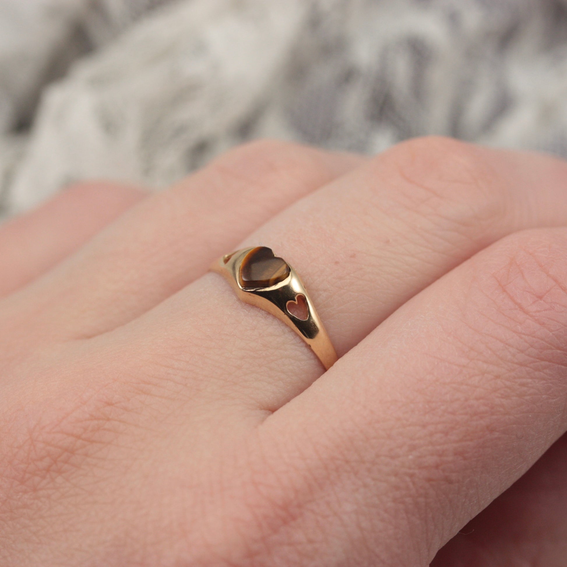 Dainty Vintage 9ct Gold Tiger's Eye Heart Ring, 1984