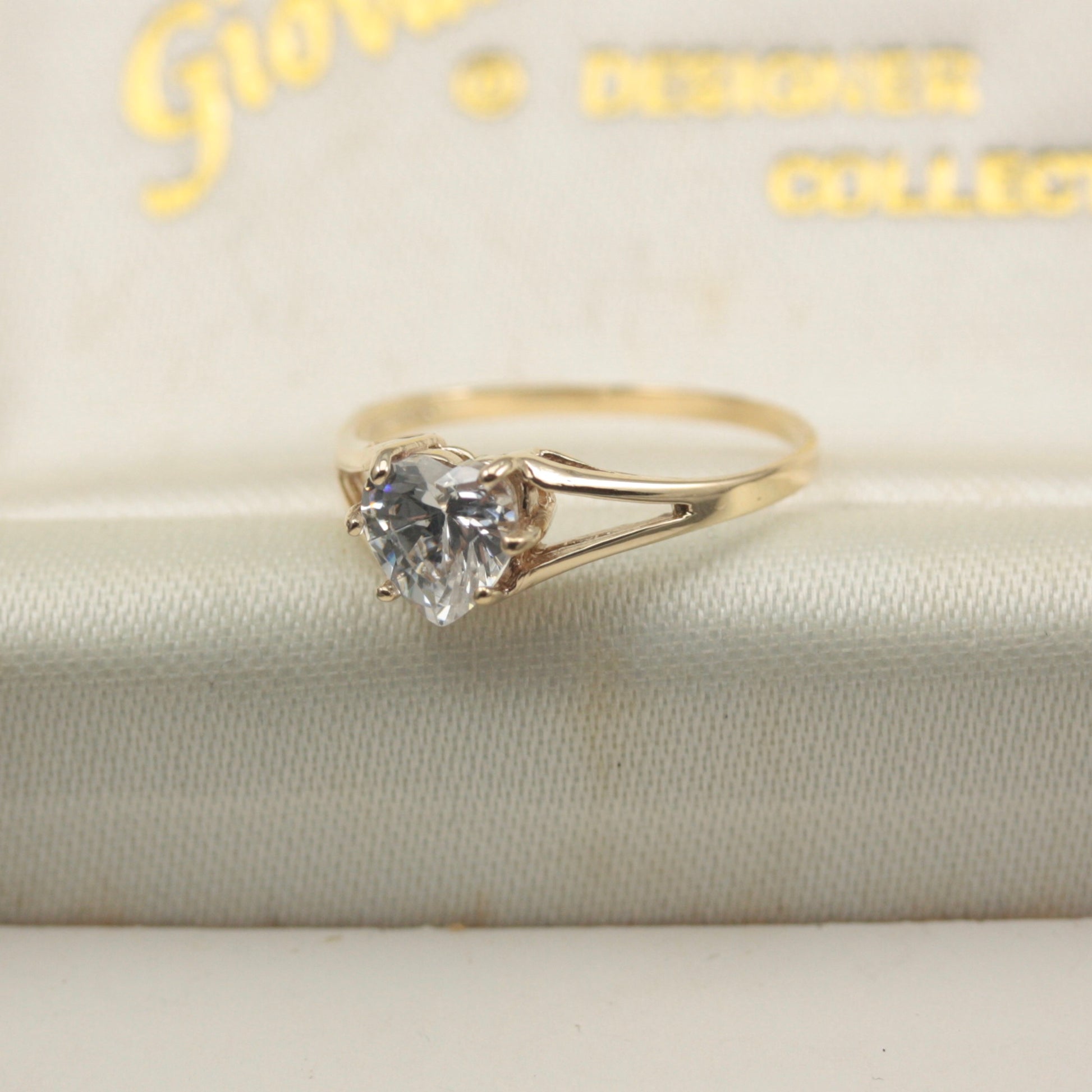 Late Vintage 9ct Gold and Cubic Zirconia Heart Ring