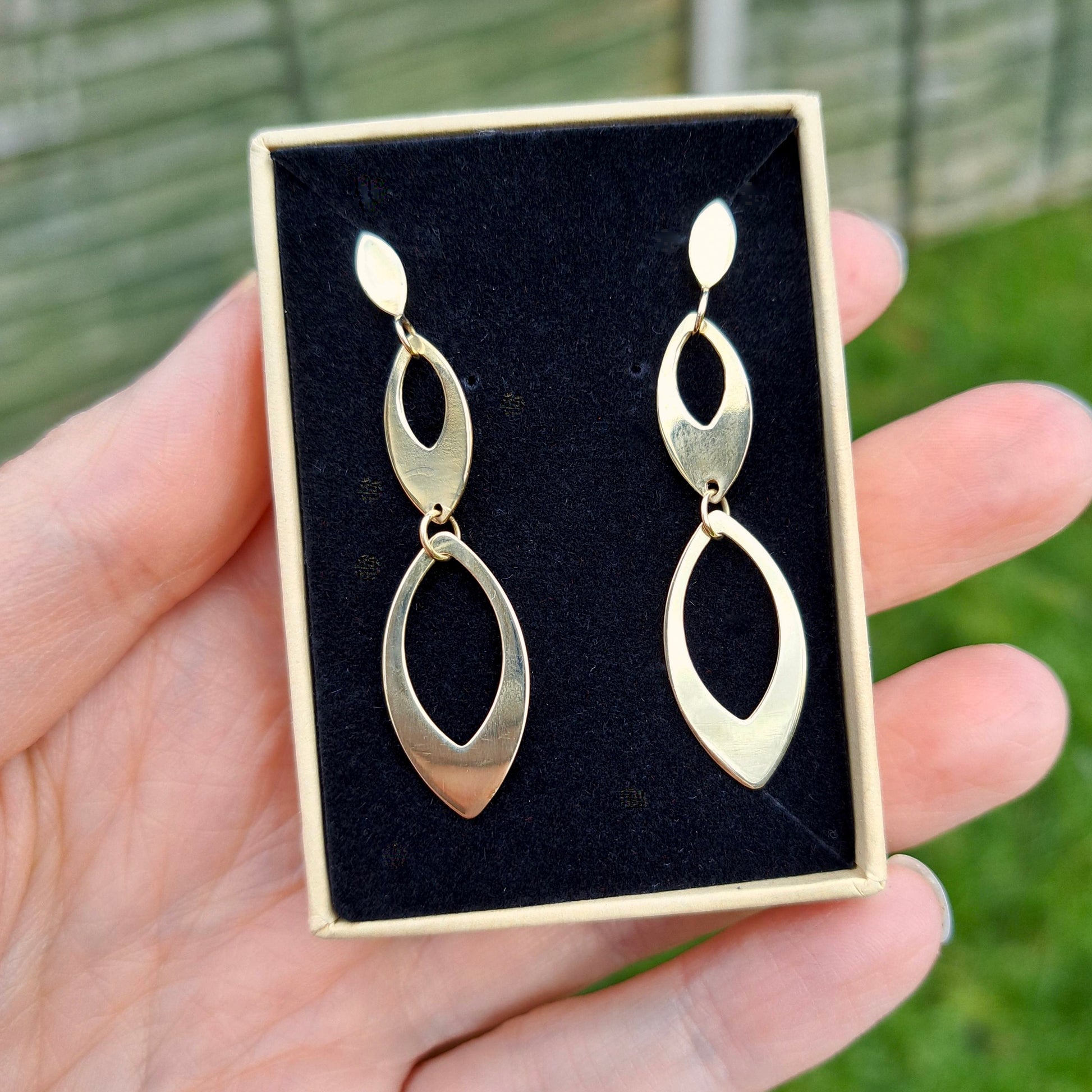 Late Vintage 9ct Gold Open Dangle Earrings