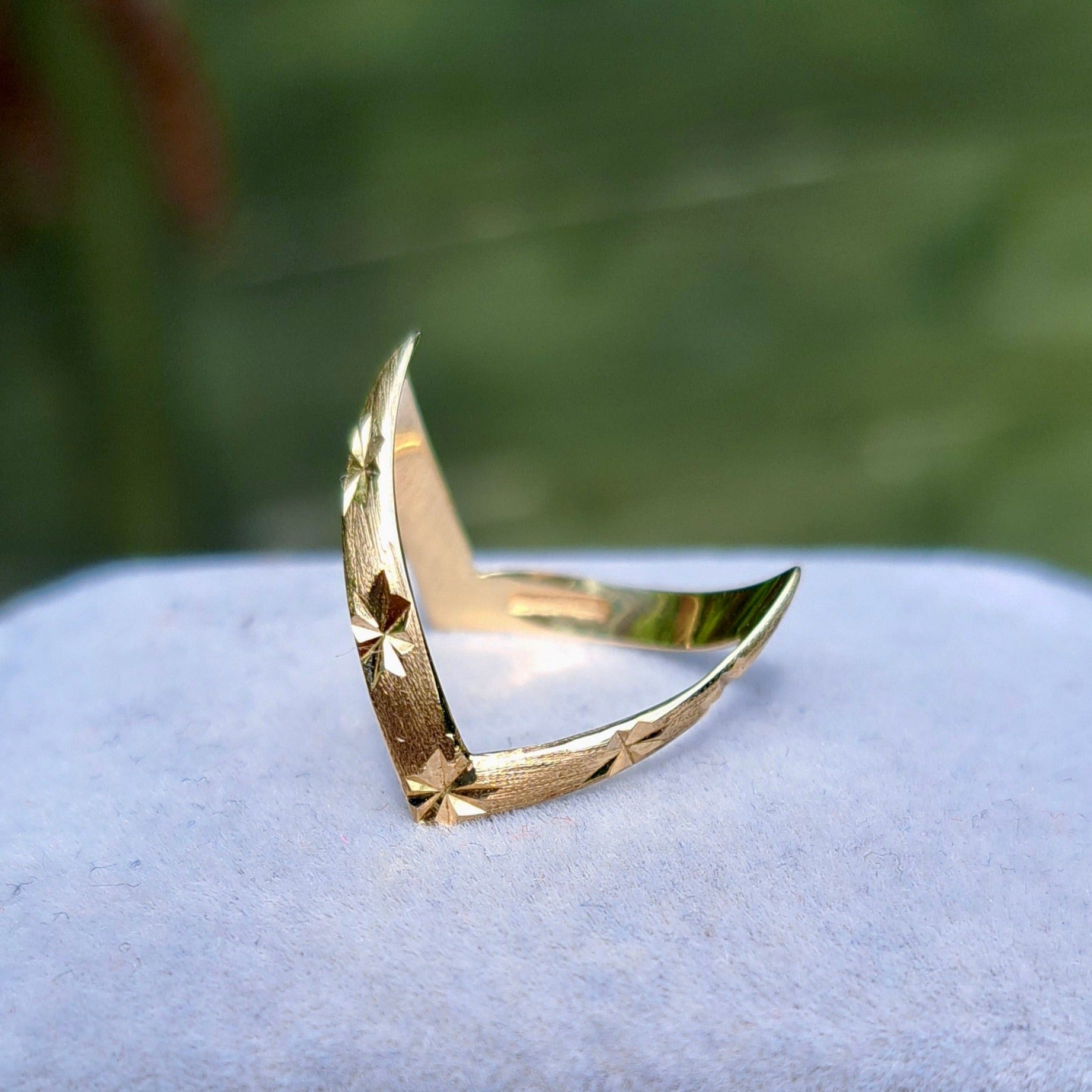 Late Vintage 9ct Gold Patterned Double Wishbone Ring