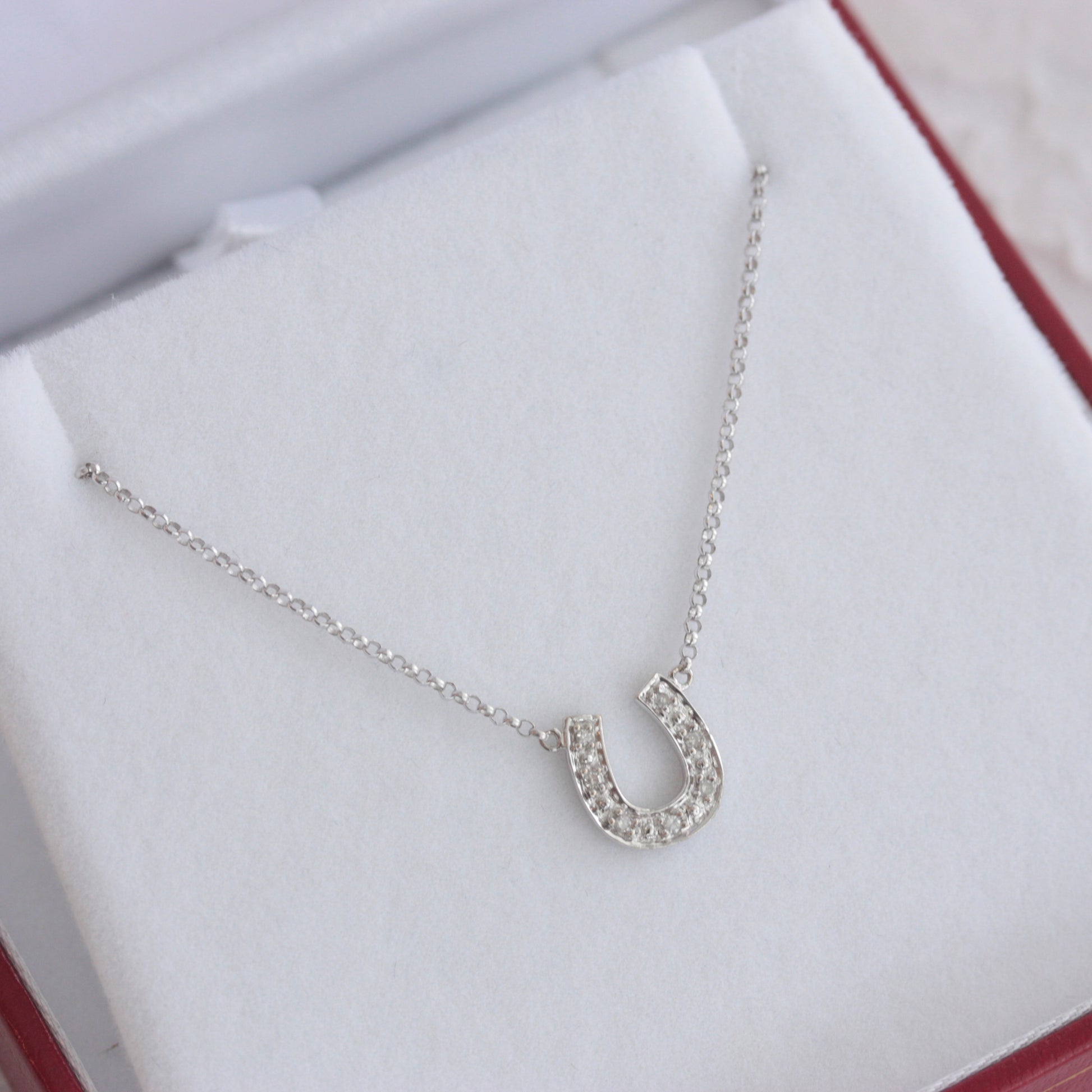 Late Vintage 9ct White Gold Diamond Horseshoe Necklace, 16 inches