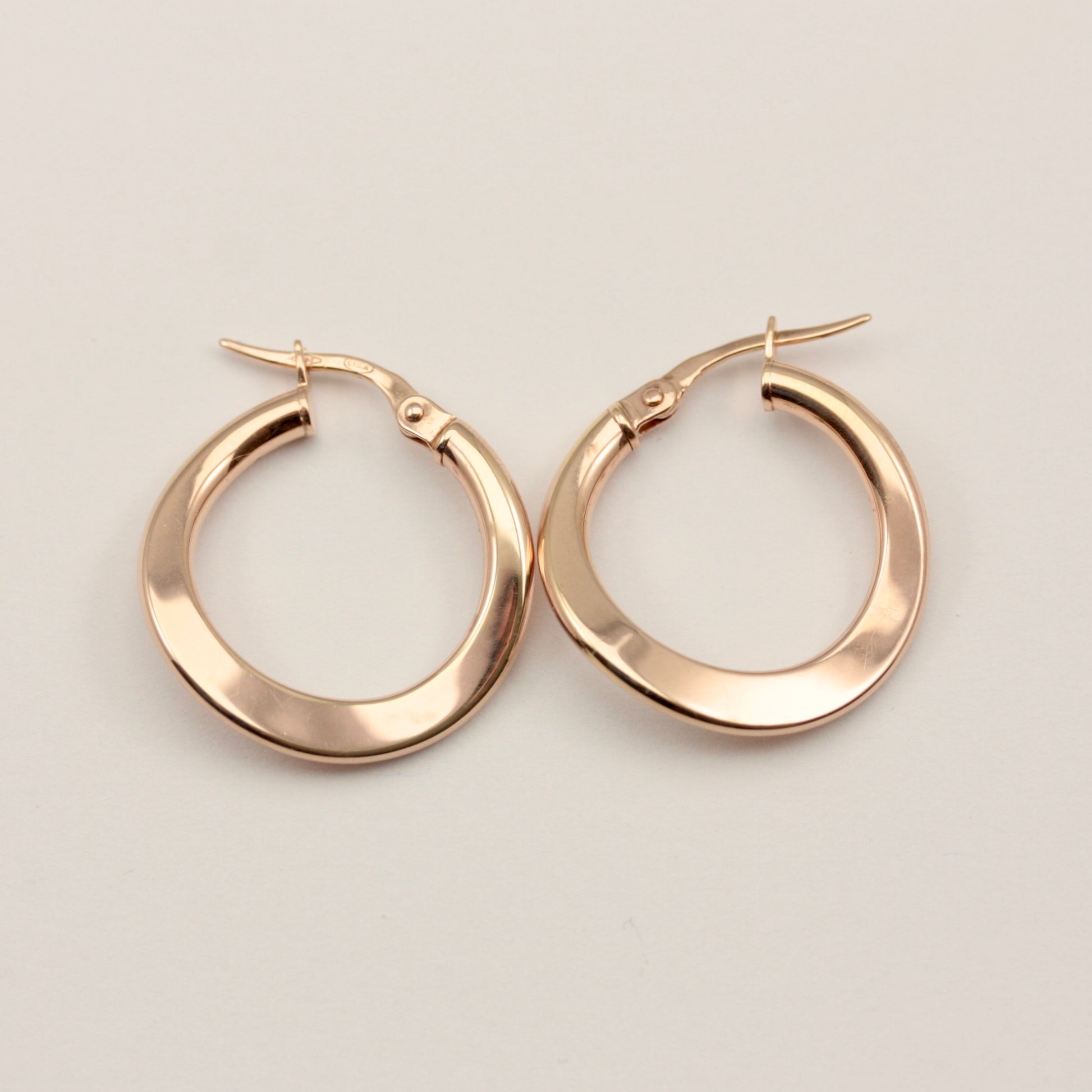 A pair of pre-owned 14ct rose gold hoop earrings a subtle waved design.