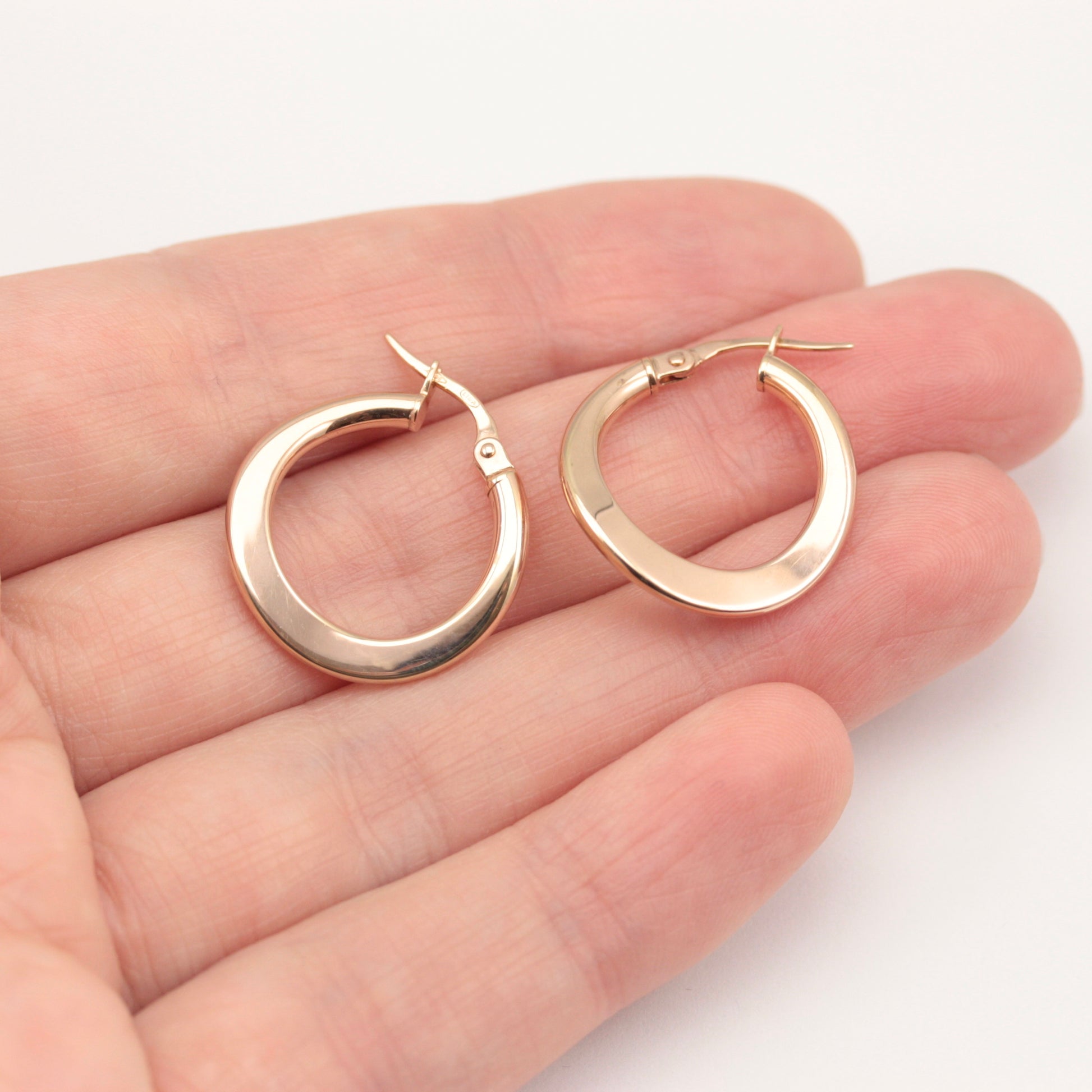 Pre-owned 14ct Rose Gold Waved Hoop Earrings