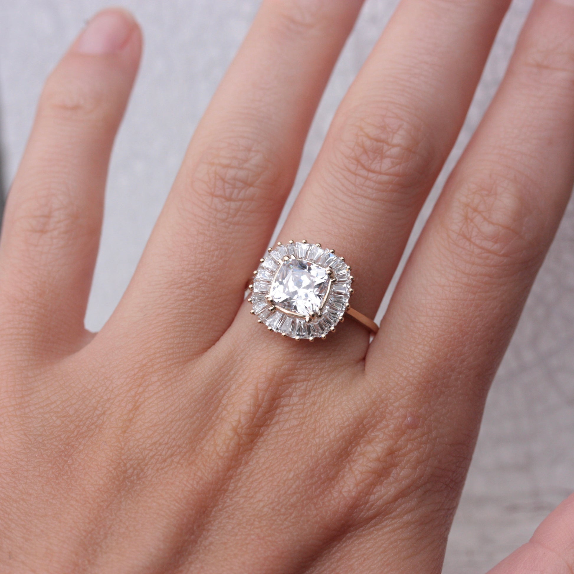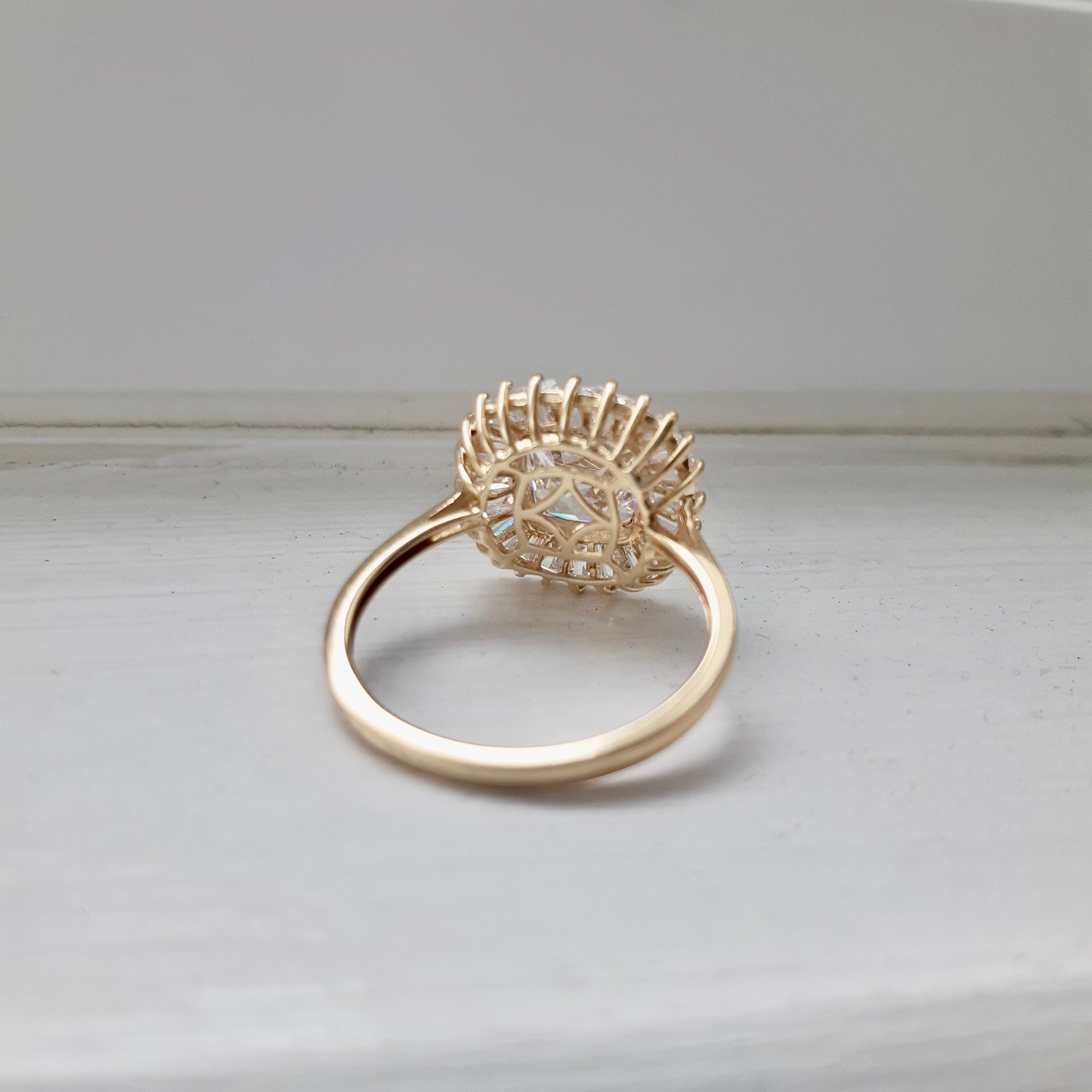 An incredibly sparkly colourless cubic zirconia halo cluster ring set in solid 9ct yellow gold.