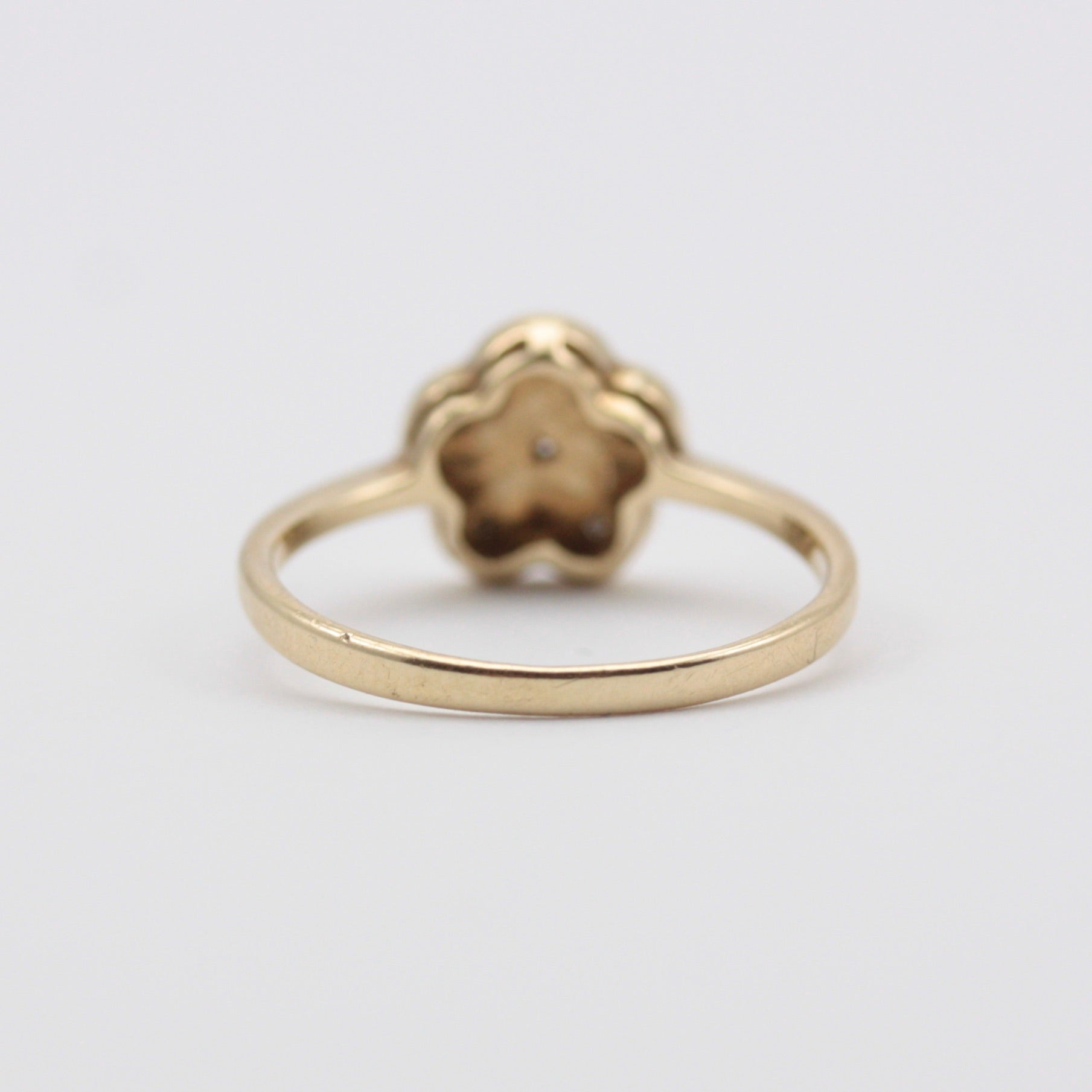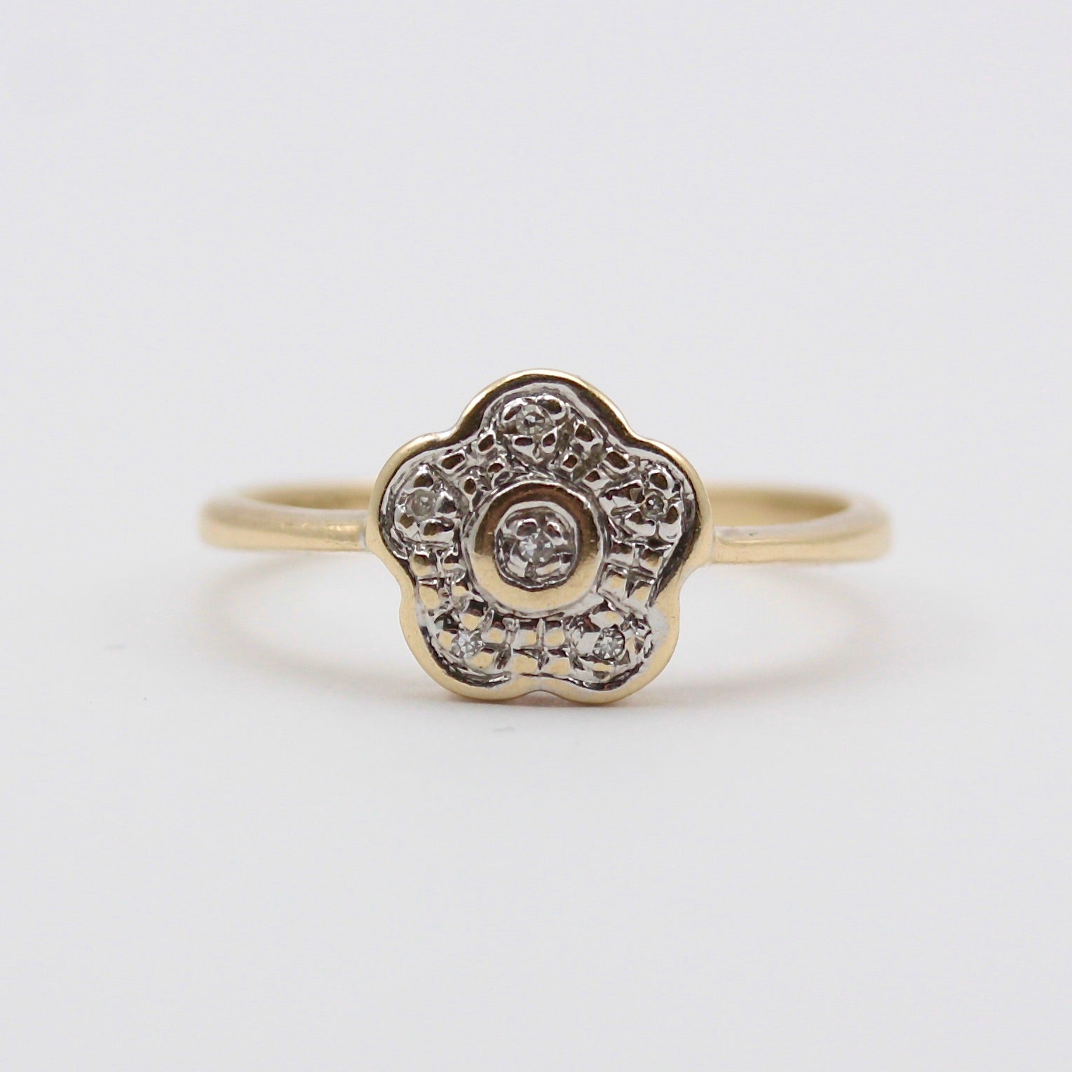 A pretty 9ct yellow gold ring daisy ring set with 6 tiny diamonds.