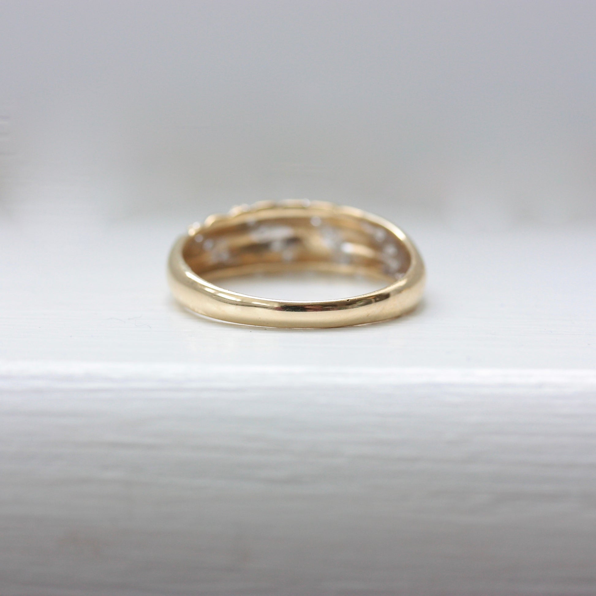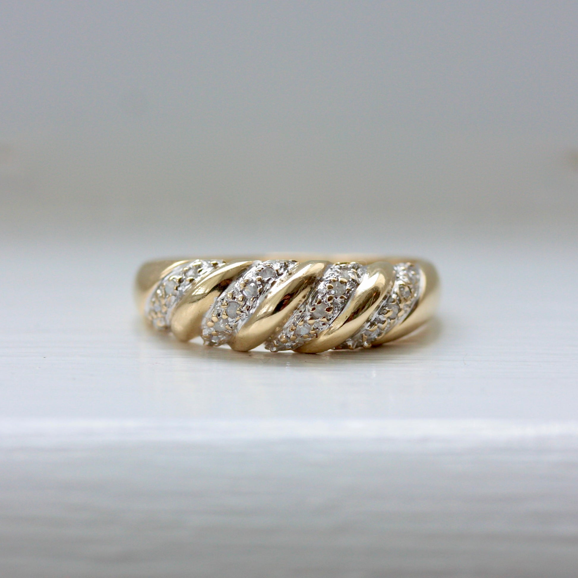 A lovely 9ct yellow gold ring in a twisted dome design, set with small diamonds.
