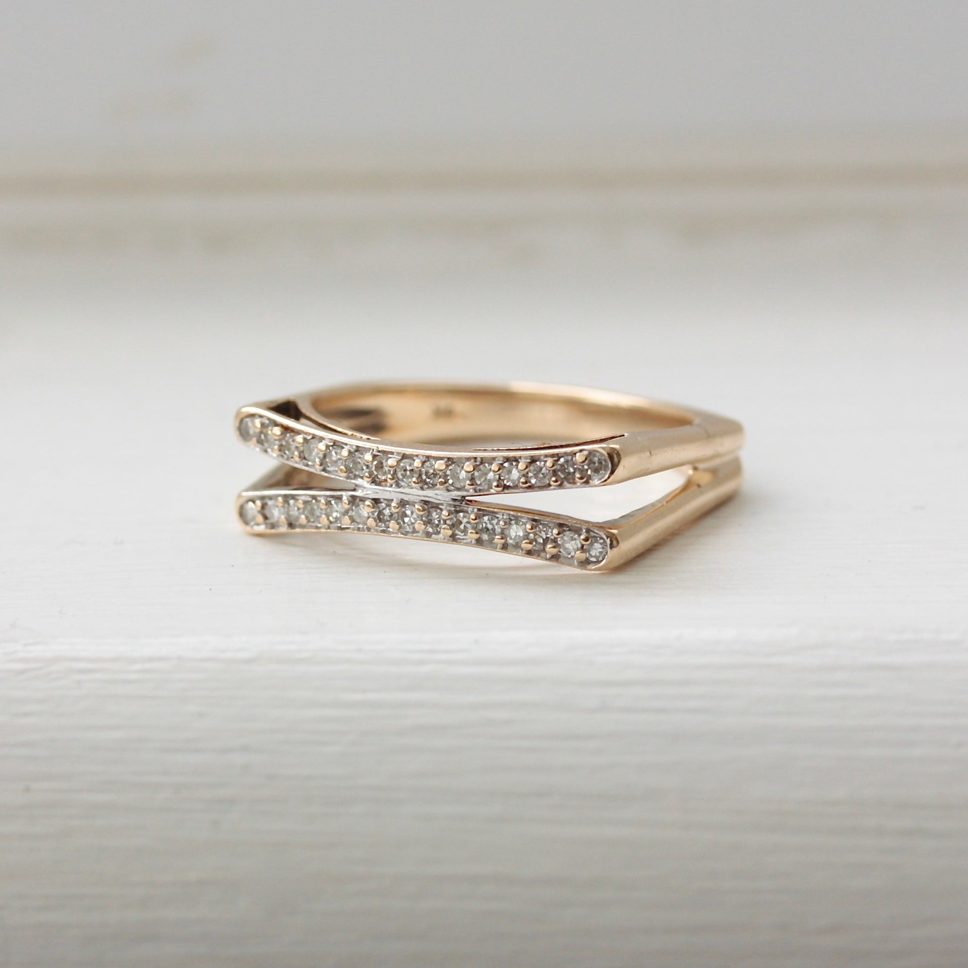 Modern Pre-owned 9ct Gold & Diamond Flat Front Split Ring