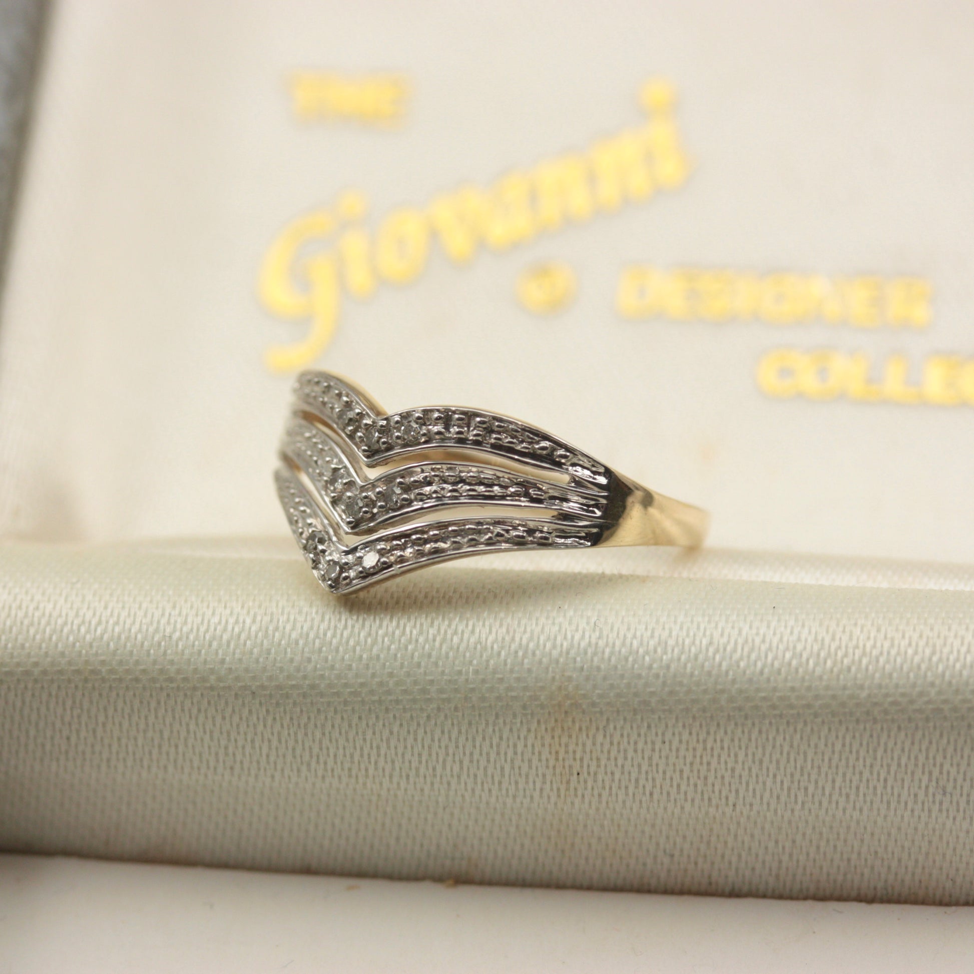 Pre-owned 9ct Gold Diamond Triple Wishbone Ring