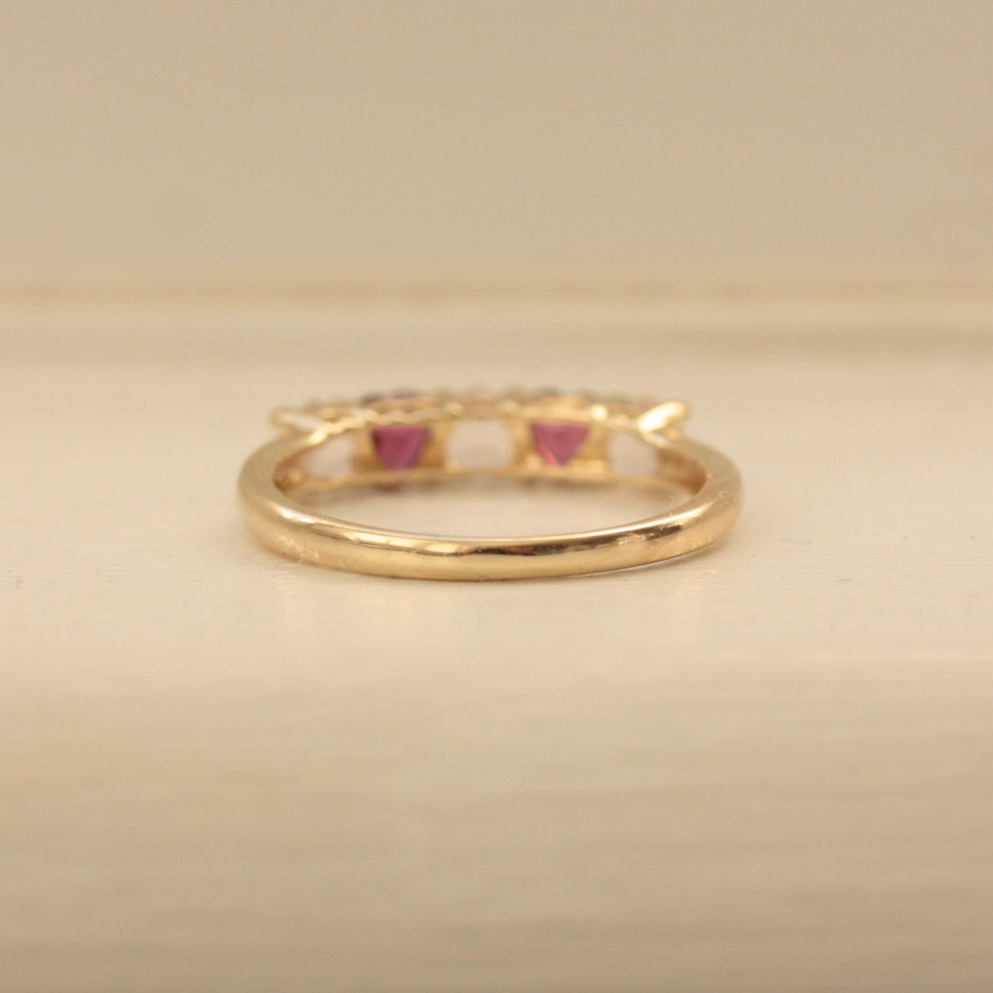 A pre-owned 9ct yellow gold ring set with garnet and rose quartz hearts.