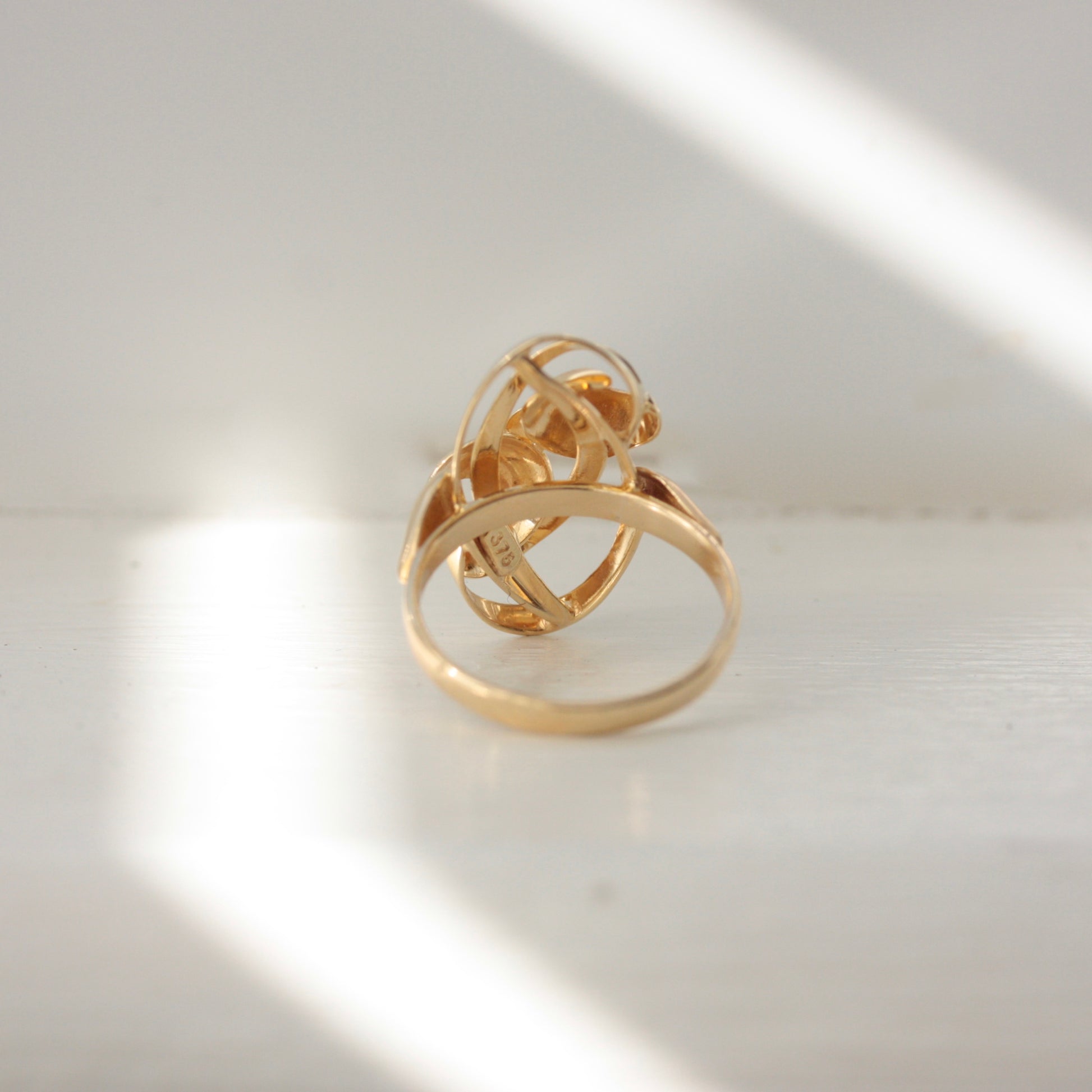 A pre-owned contemporary 9ct gold ring in an abstract / modernist design.