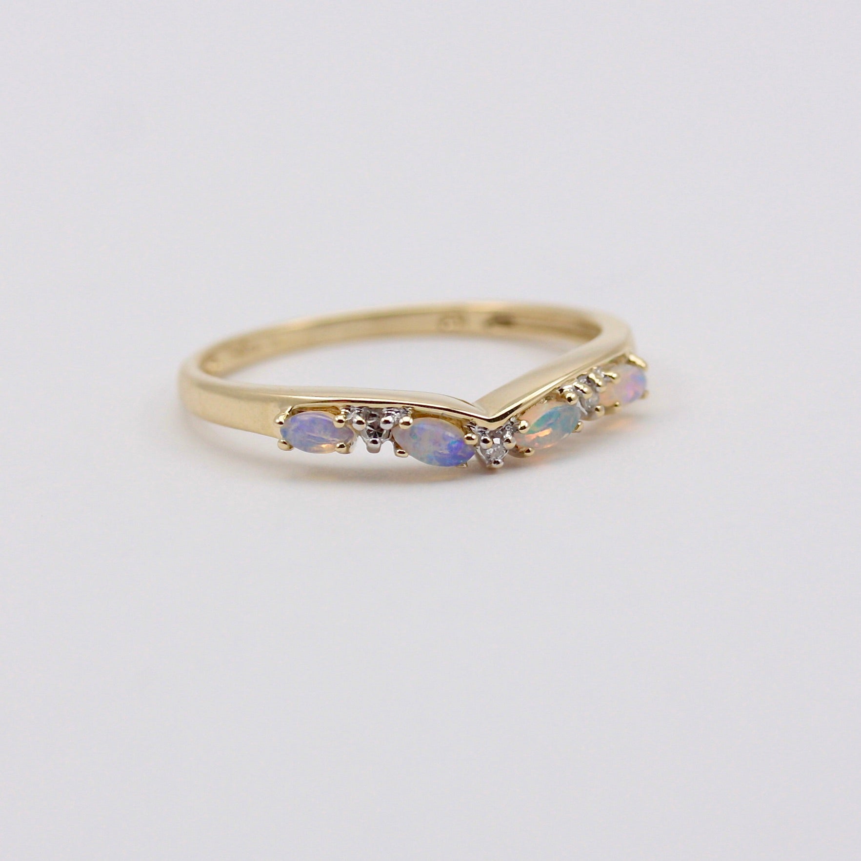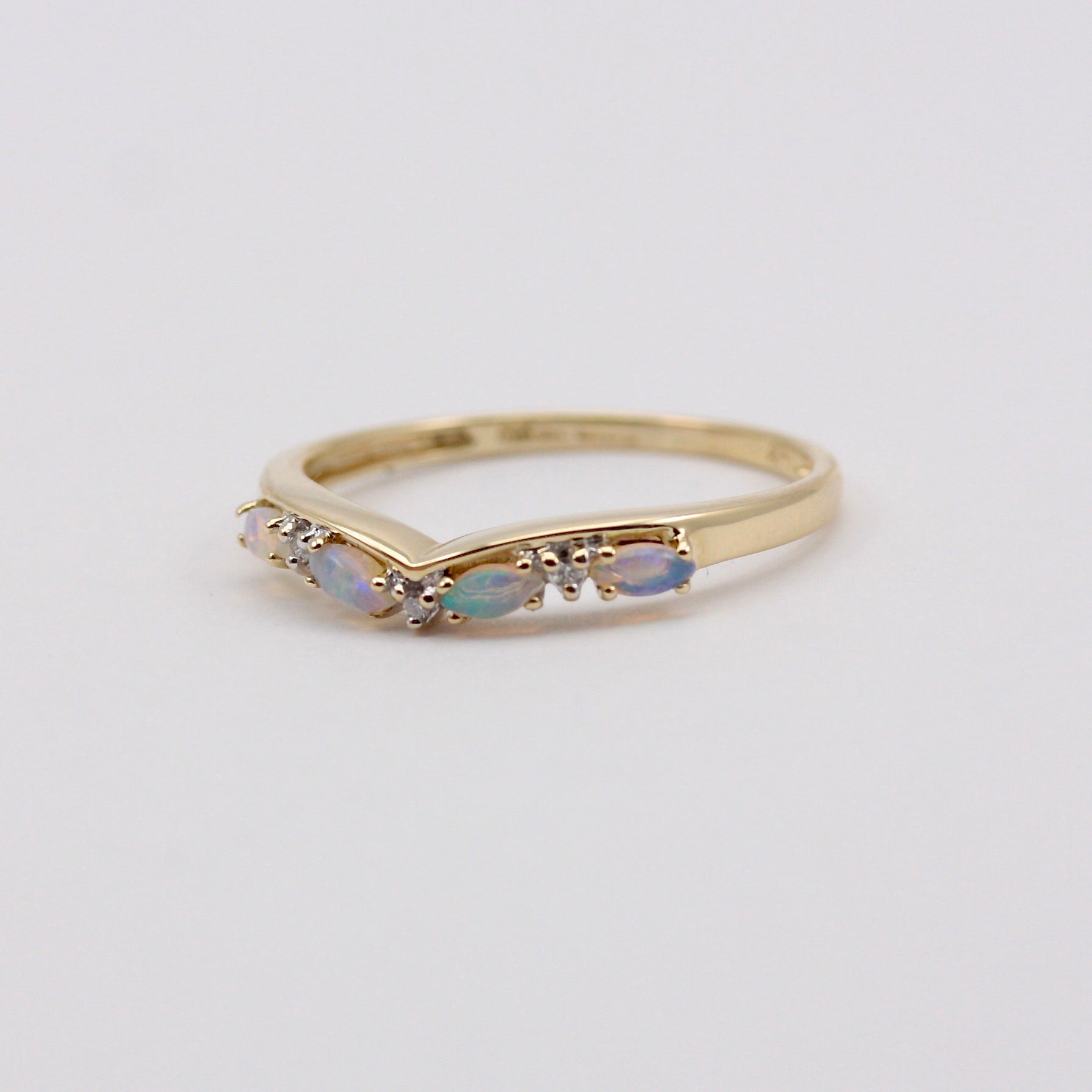 A modern (almost vintage!) pre-owned 9ct yellow gold wishbone ring with opal and diamond, from QVC.