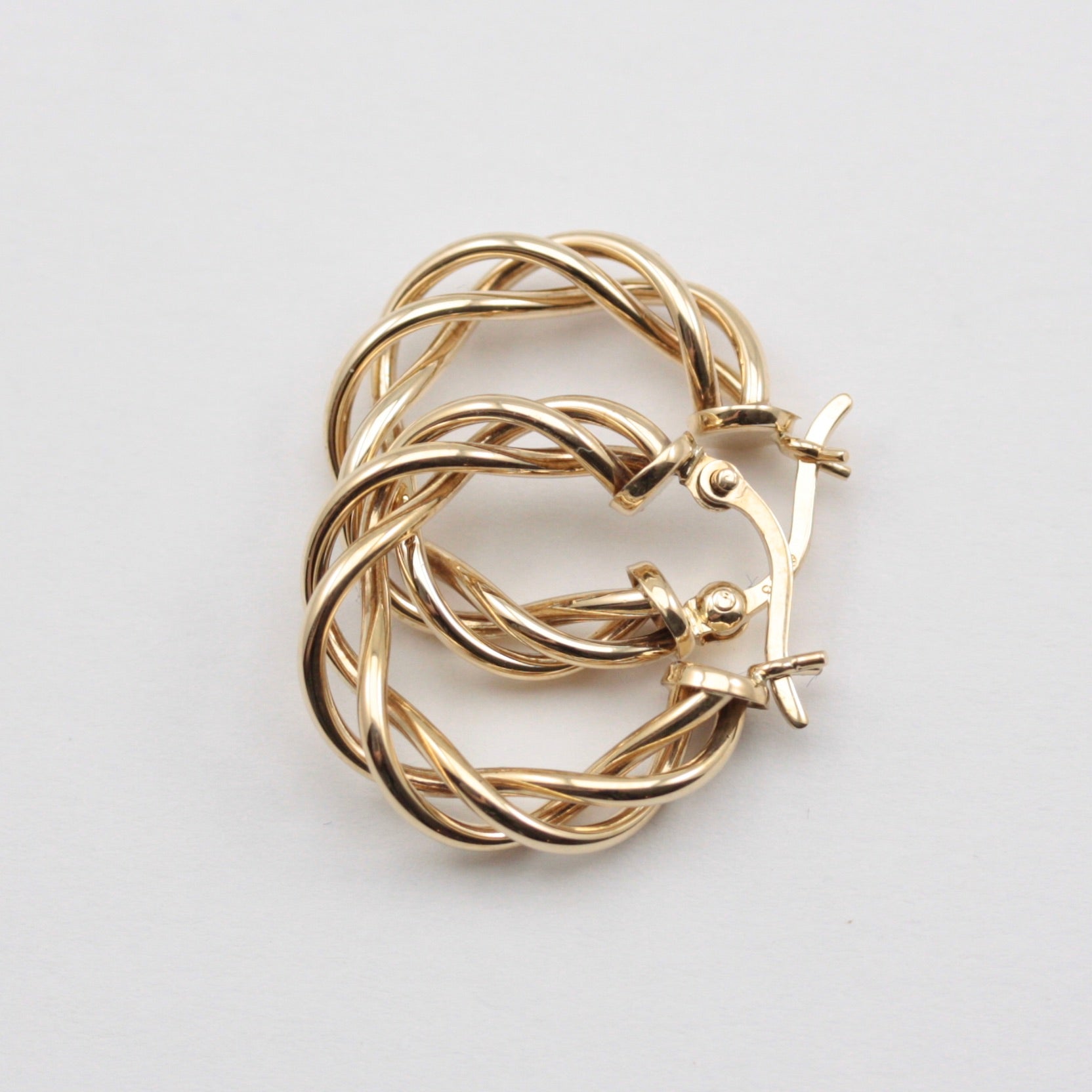Vintage 9ct Gold Open Twist Hoop Earrings, Medium
