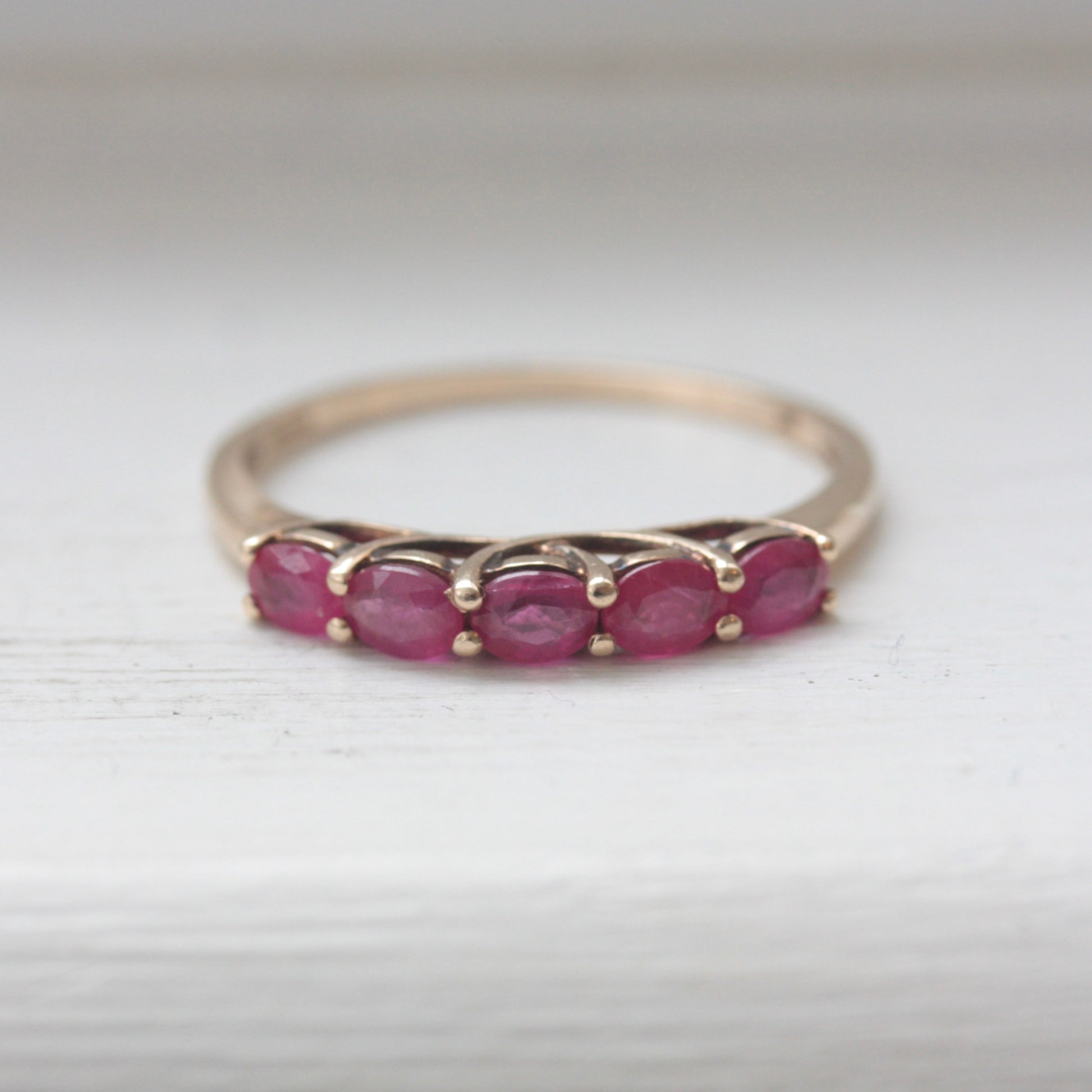 A lovely 9ct yellow gold ring with five natural rubies.