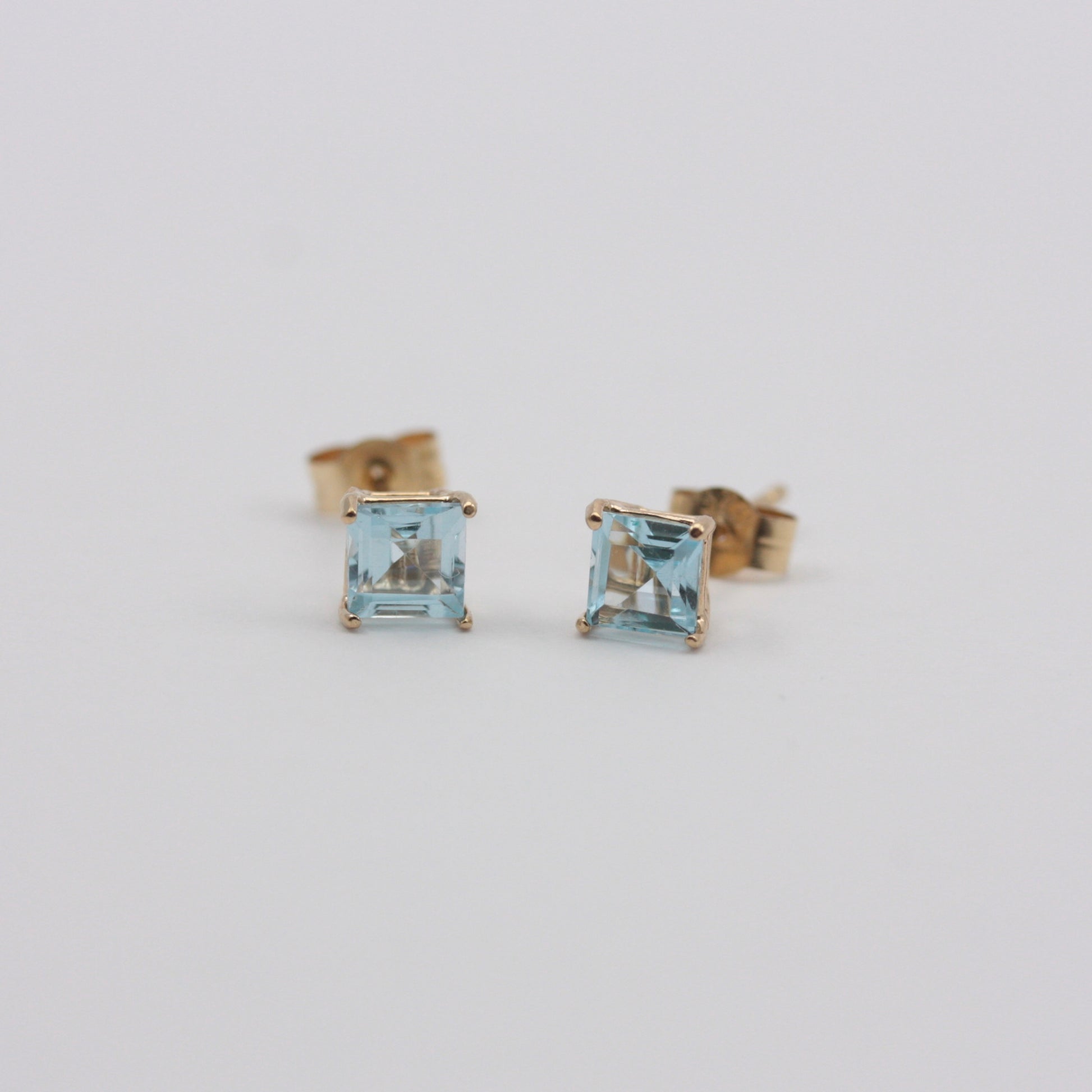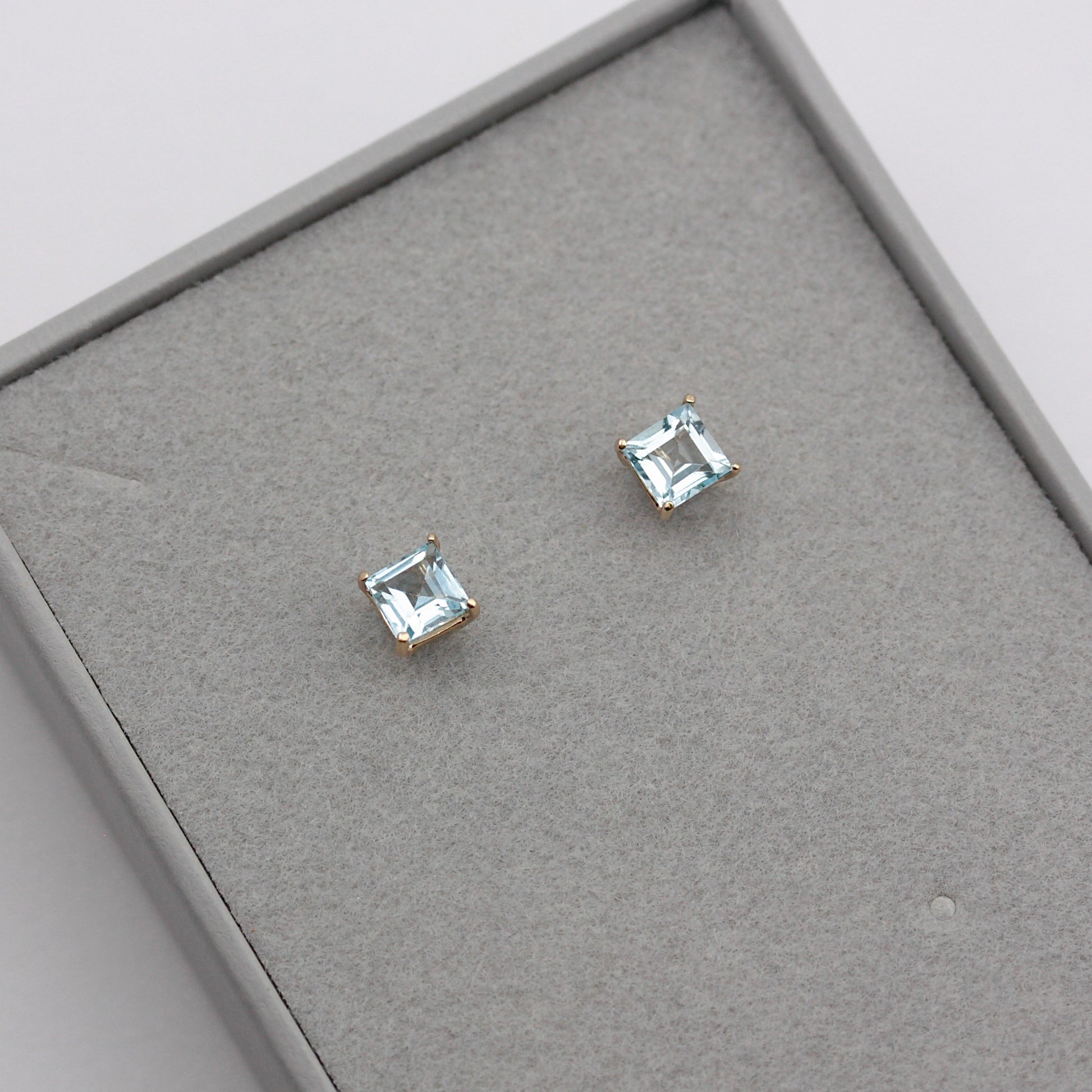 Pre-owned 9ct Gold Square Blue Topaz Stud Earrings, 4mm