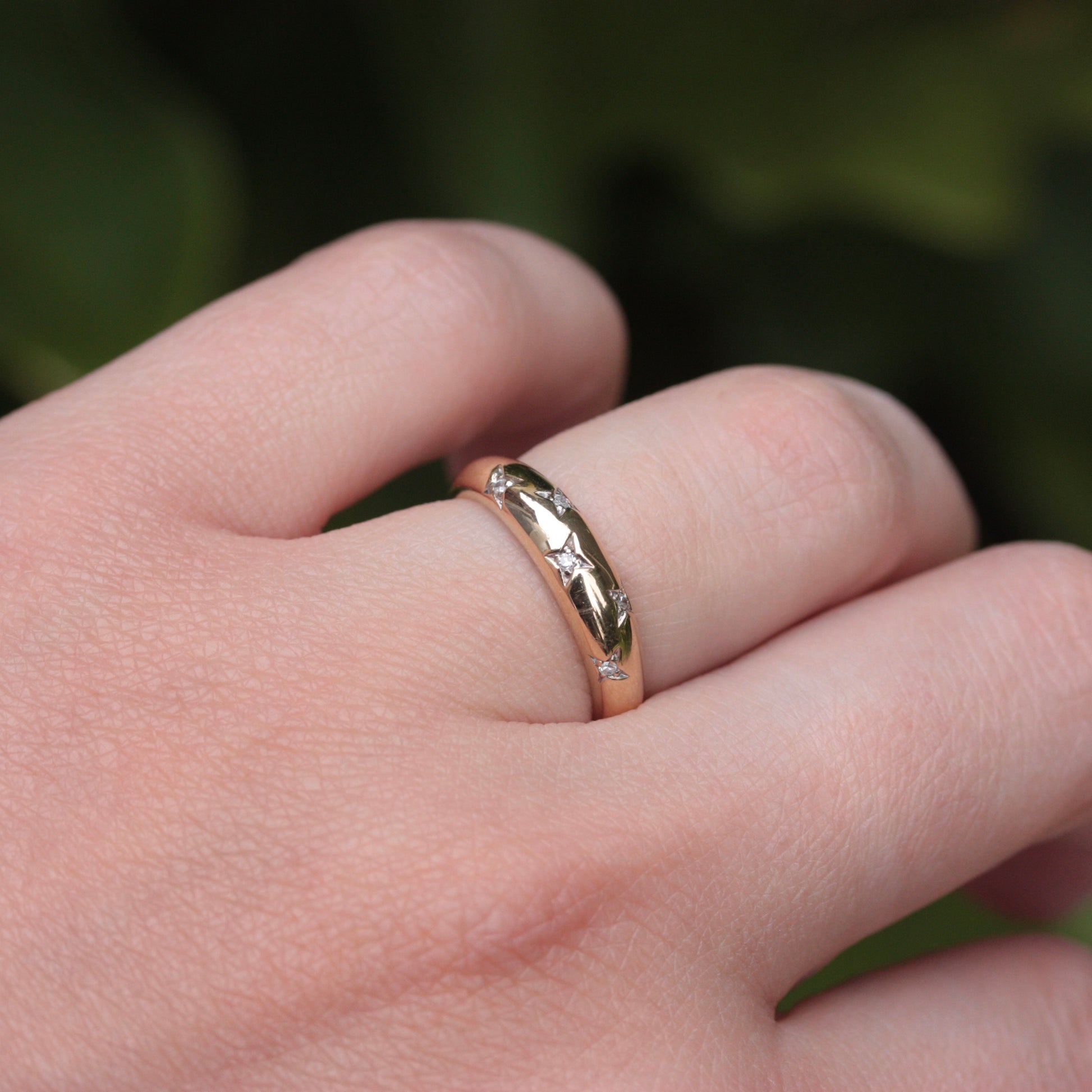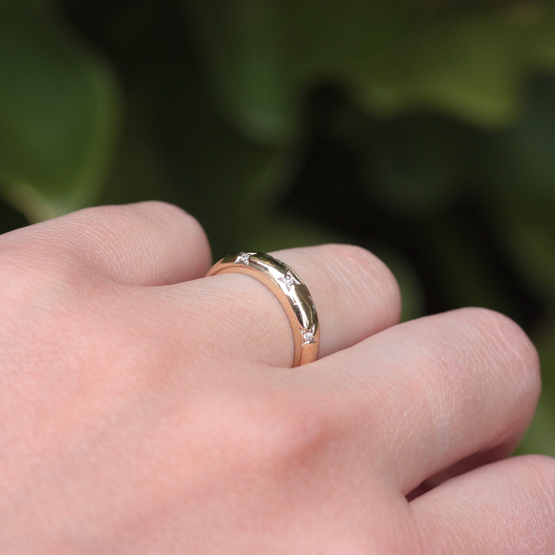 This 9ct Gold Star Set Diamond Domed Ring exudes effortless luxury. The domed shape, crafted from gold, is accented by star set diamonds for subtle sparkle. Indulge your inner glamour with this beautiful pre-owned piece.