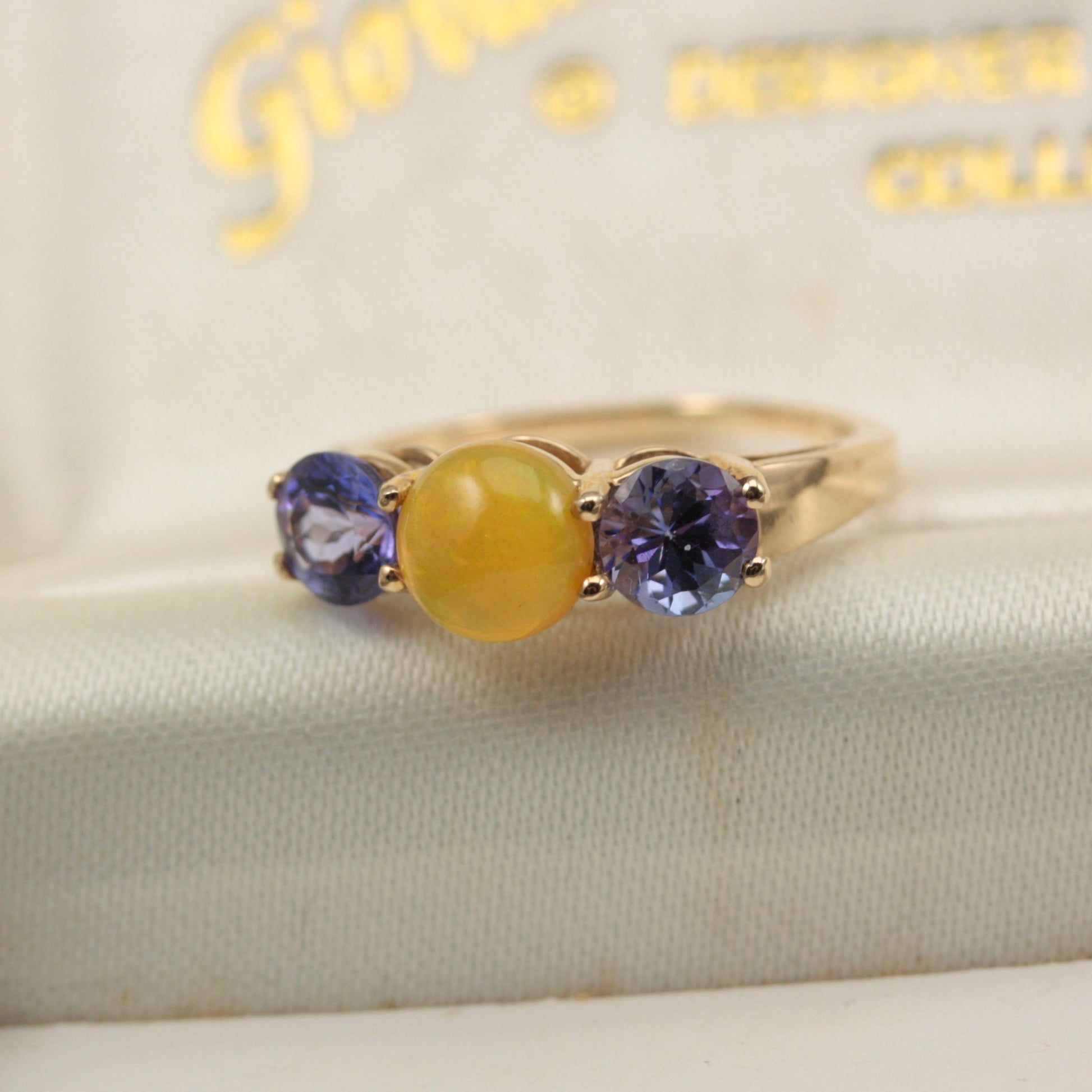 Pre-owned 9ct Gold, Tanzanite and Yellow Opal Three Stone Ring