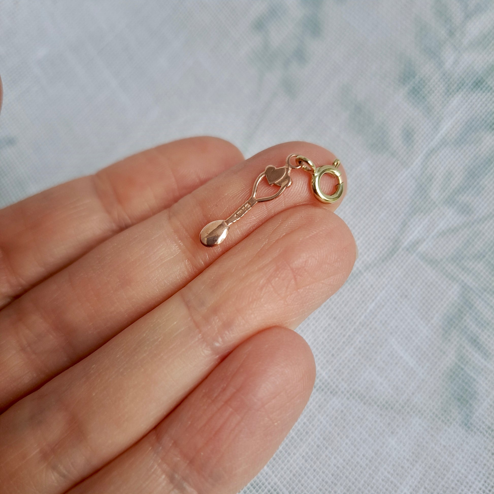 A lovely 9ct rose and yellow gold mini Welsh love spoon charm with bolt ring clasp, by Clogau.
