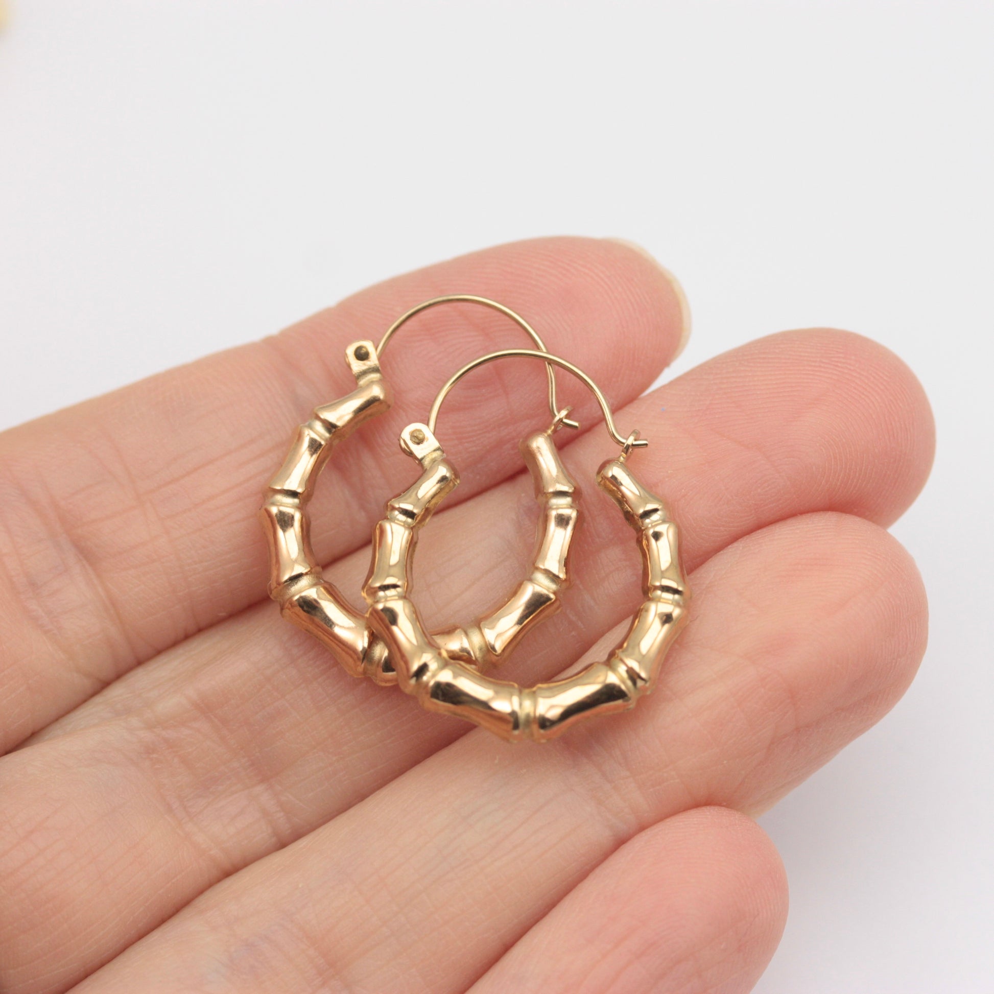 Pre-owned 9ct Yellow Gold Bamboo Hoop Earrings