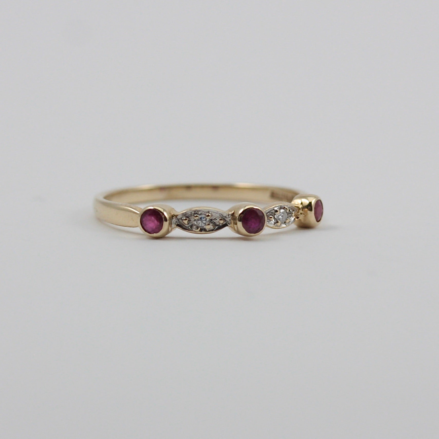 Pre-owned Dainty 9ct Gold Ruby and Diamond Band Ring