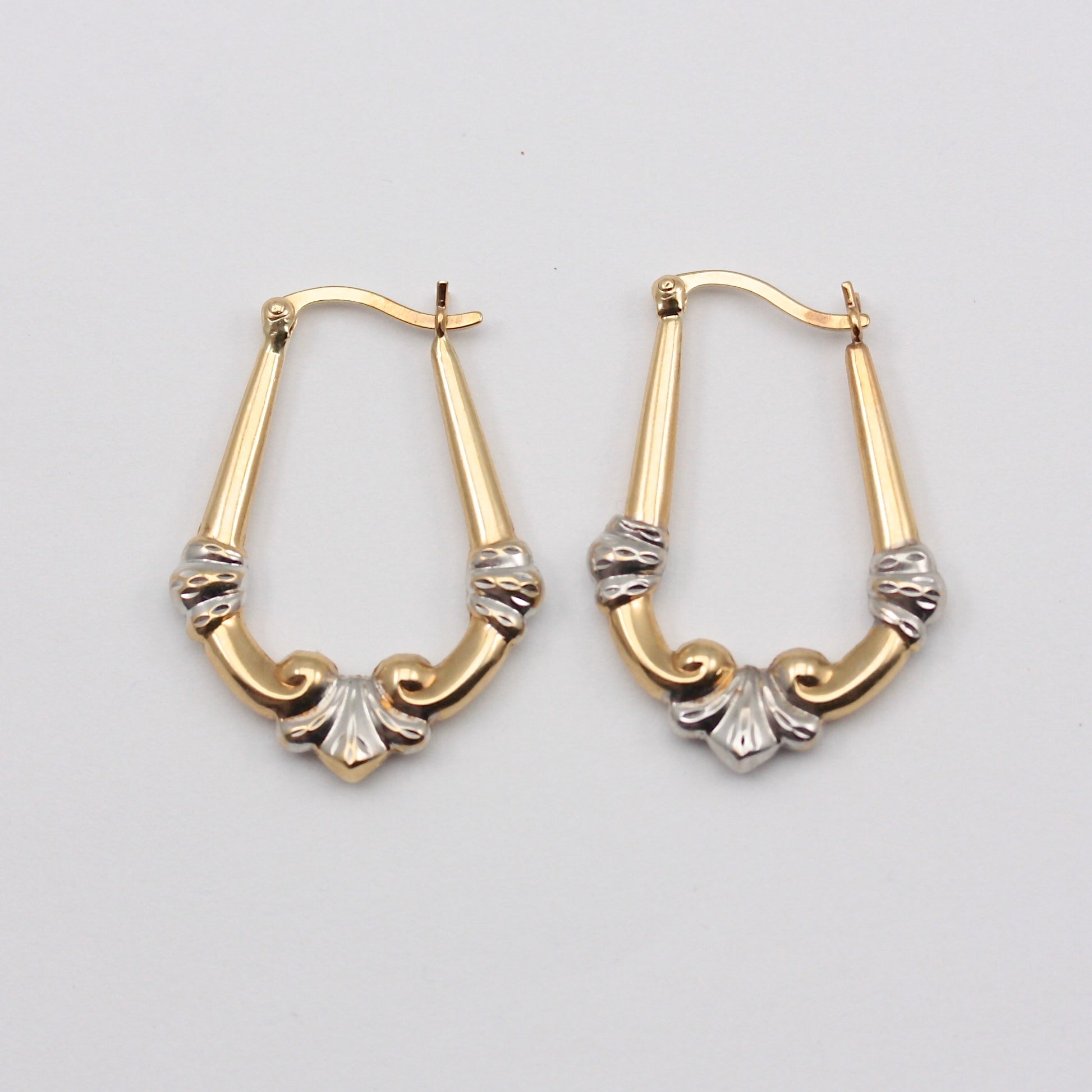 Pre-owned Two Tone 9ct Gold Fancy Creole Hoop Earrings