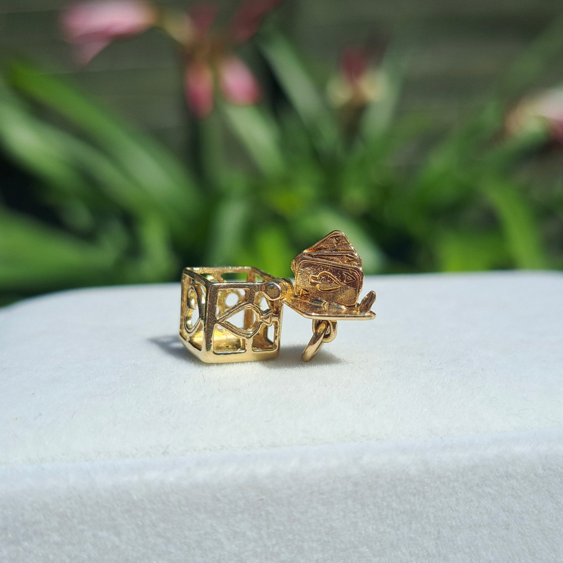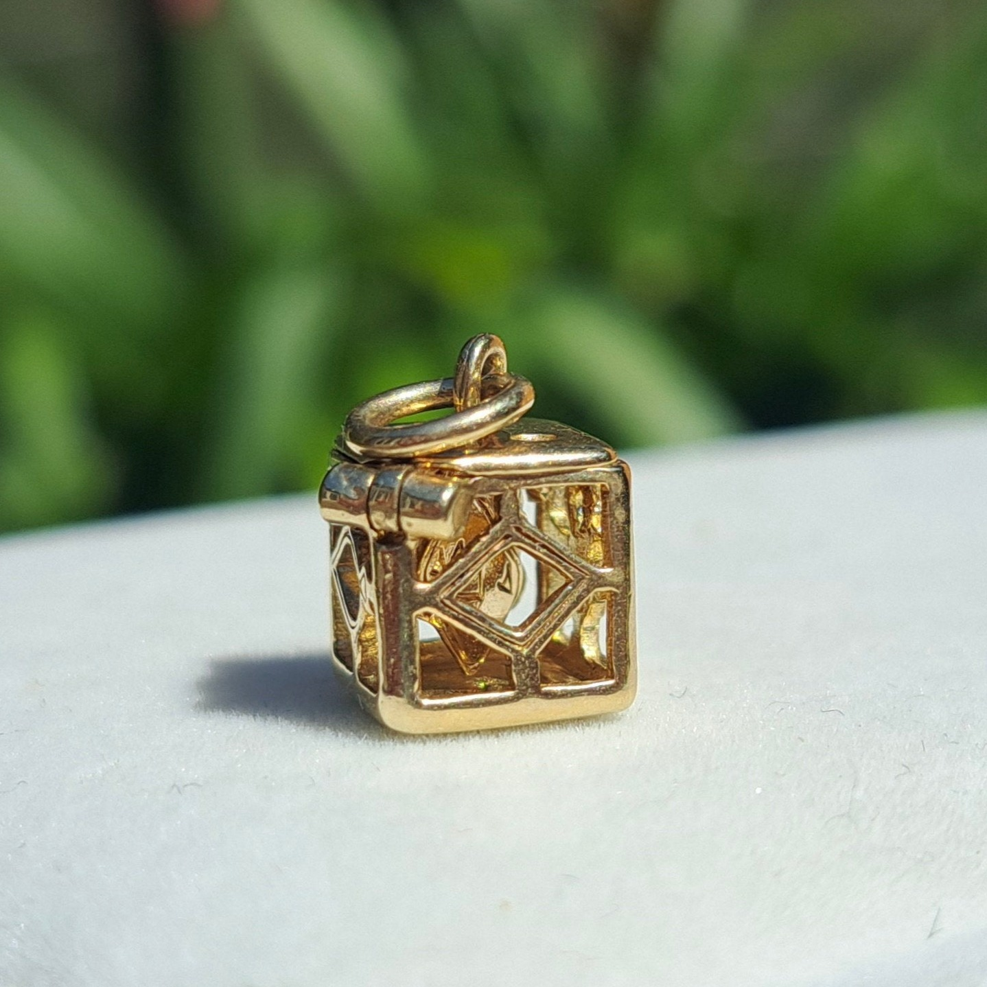Rare Vintage 9ct Gold Opening Dice / Box Charm with Playing Cards Inside, 1963