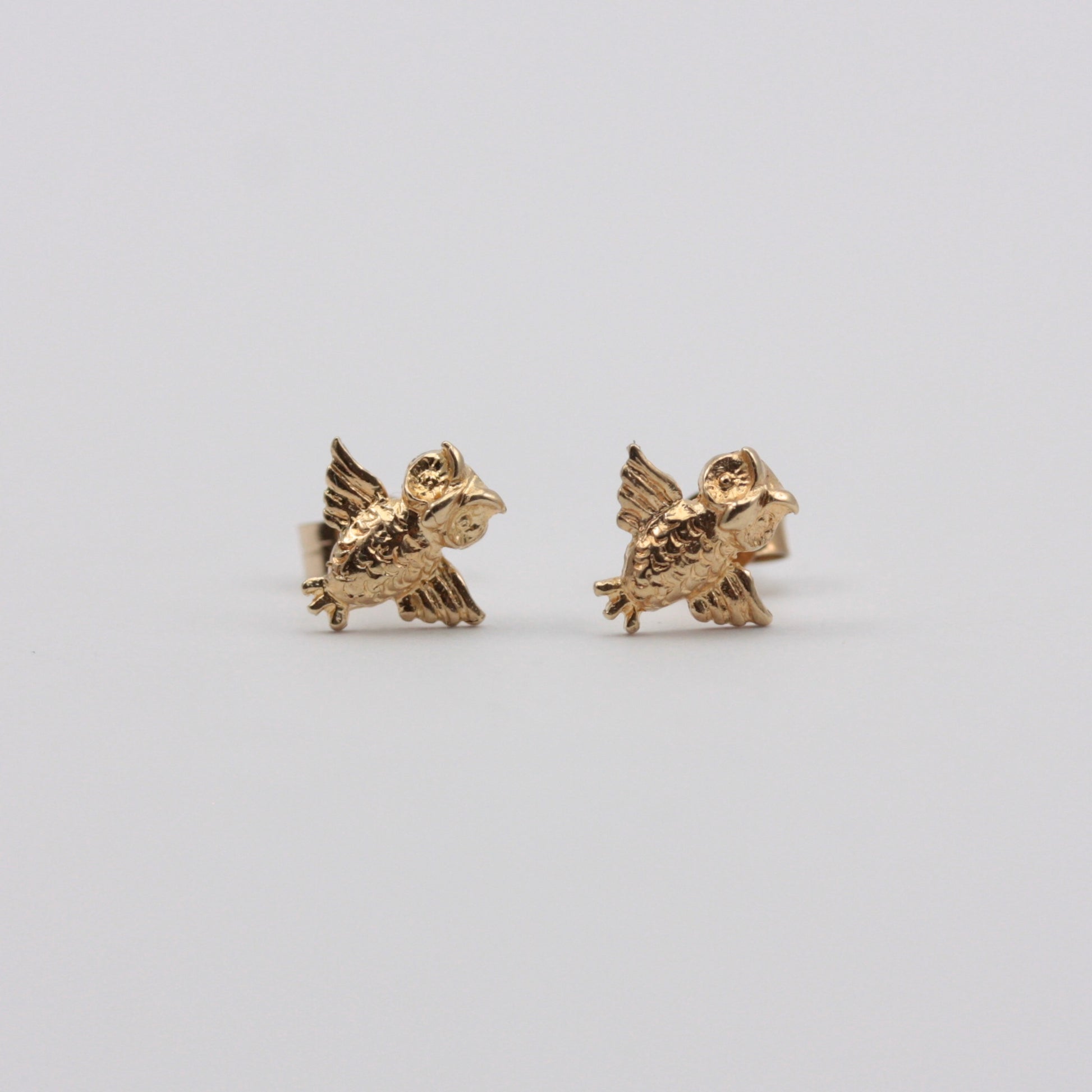 Solid 9ct Gold Owl Stud Earrings