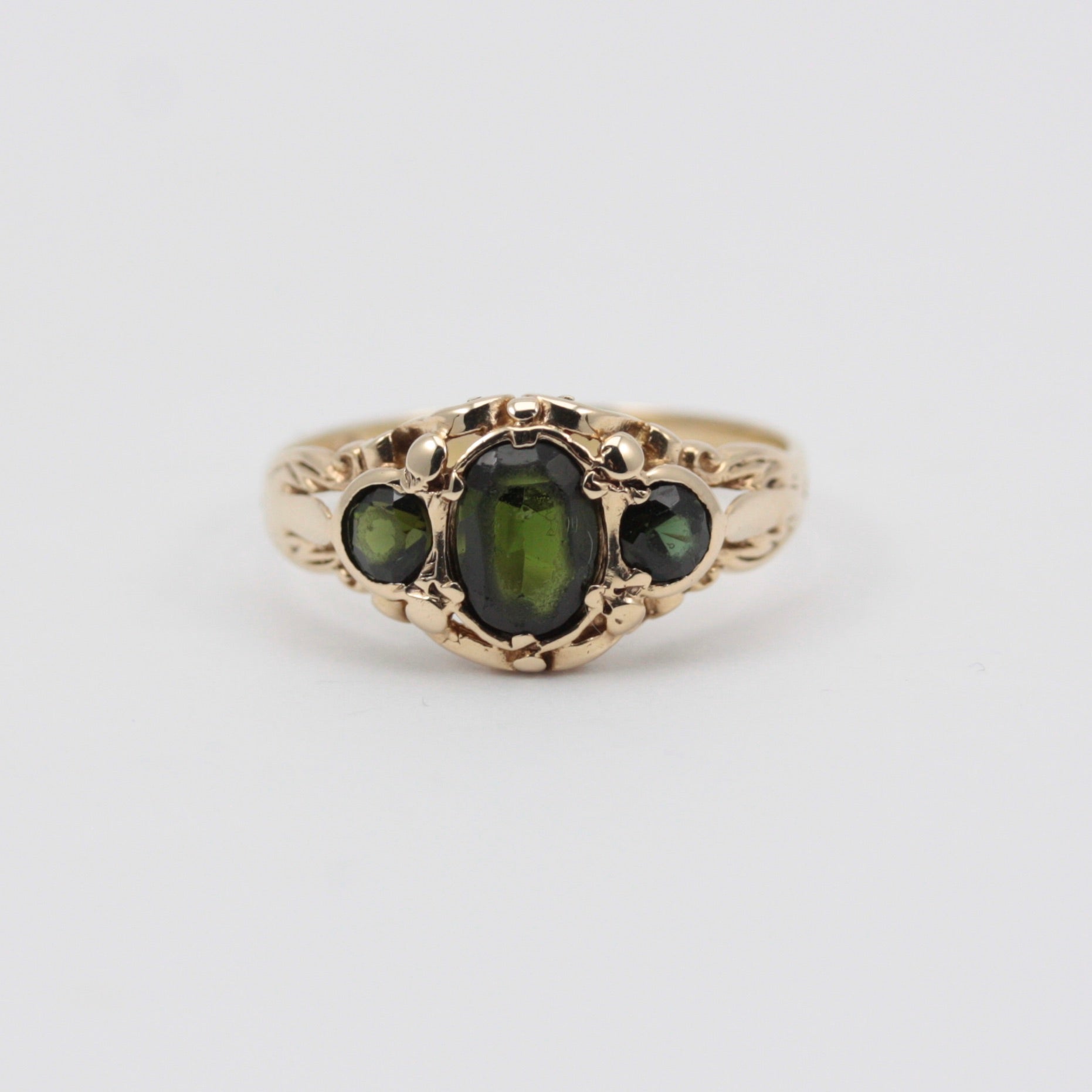 Vintage 9ct Gold Green Stone Trilogy Ring