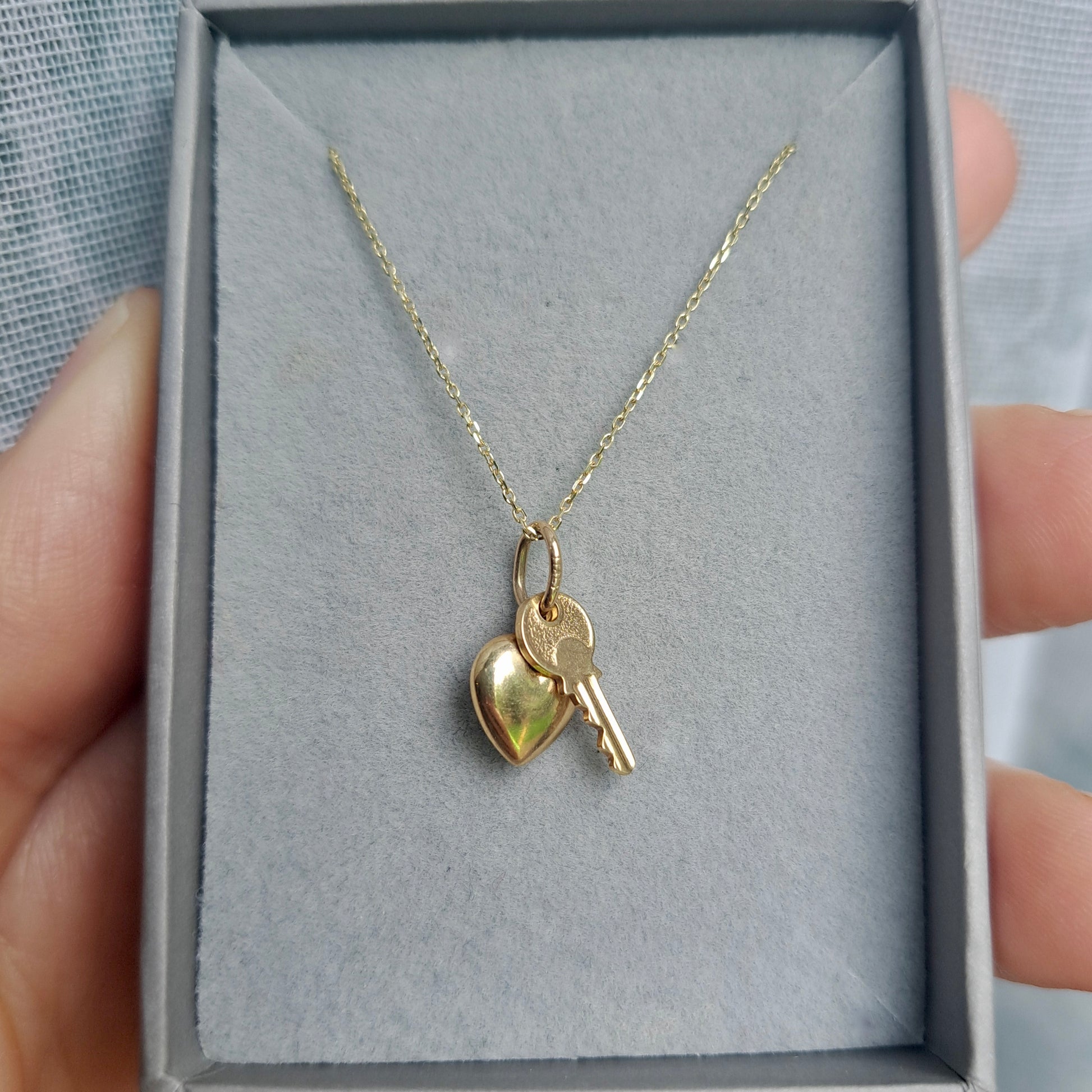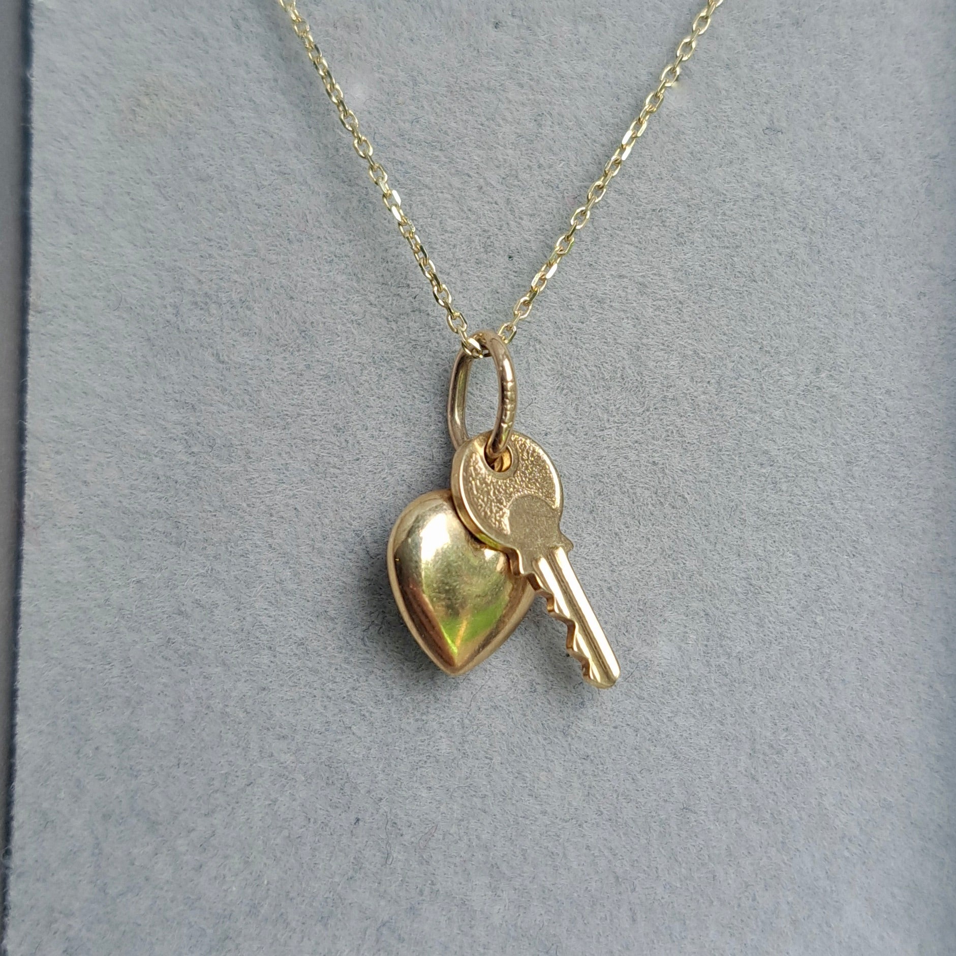 Small 9ct Gold "Key To My Heart" - Yale Key and Puffy Heart Charm