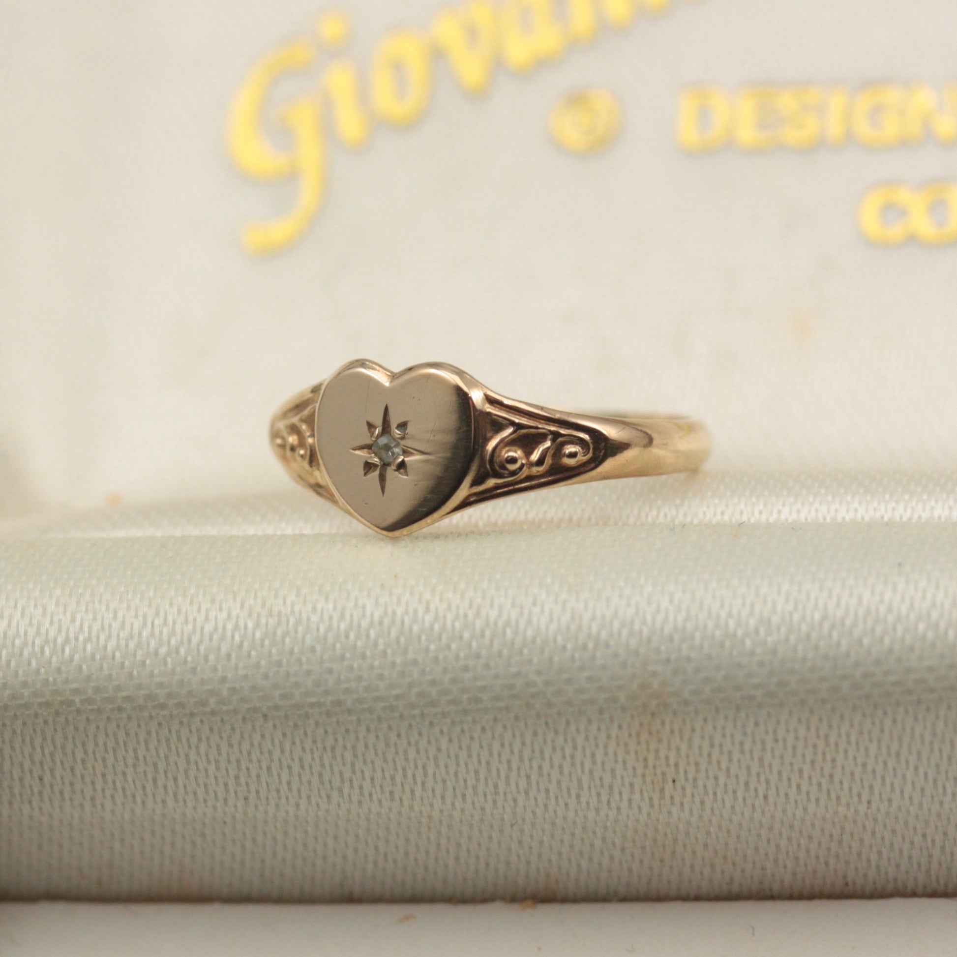 Small Pre-owned 9ct Gold and Diamond Heart Signet Ring